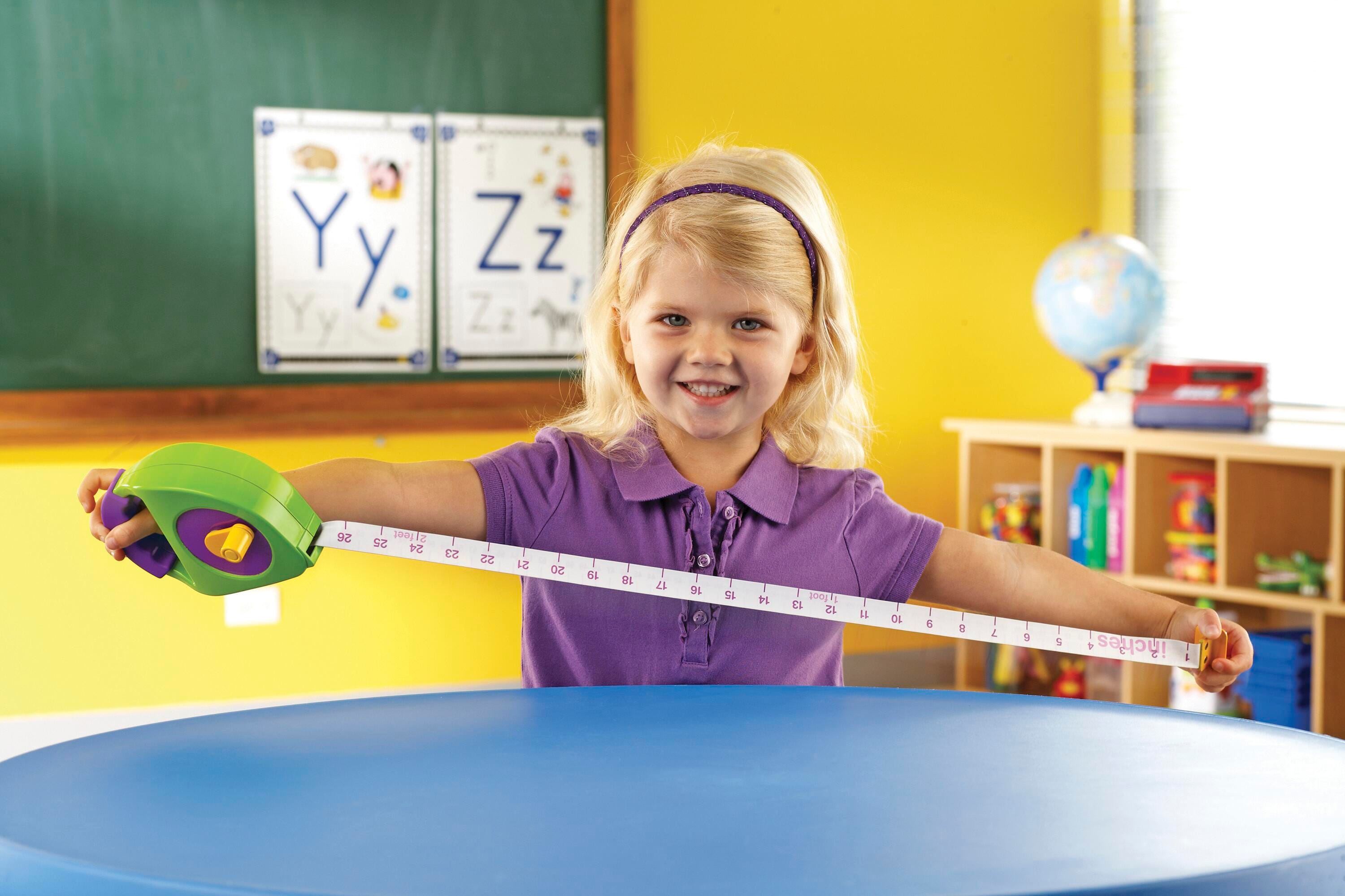 - Four-feet long children-friendly tape measure provides a safe, easy, fun measurement tool for early childhood classrooms, childcare centers, and home