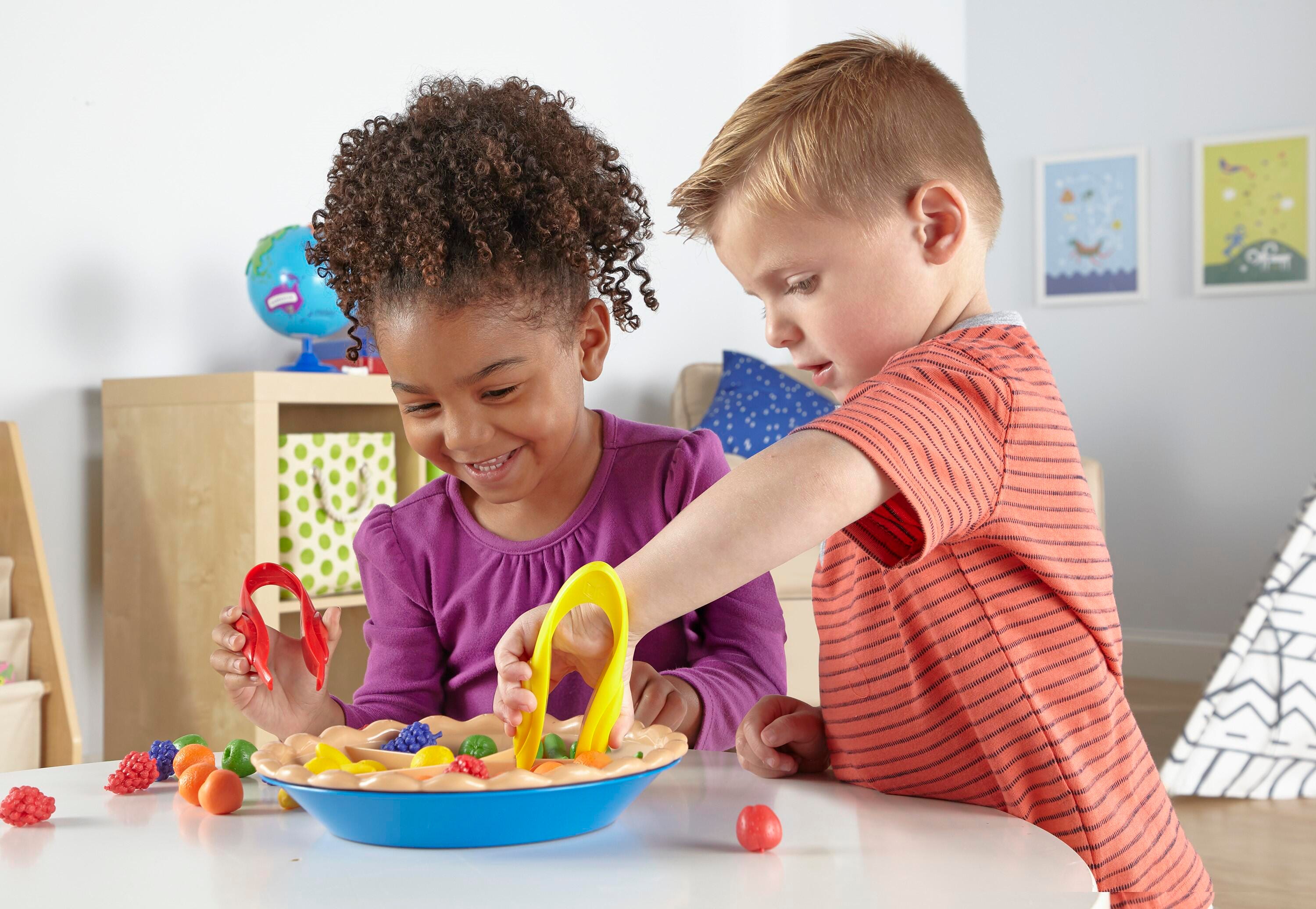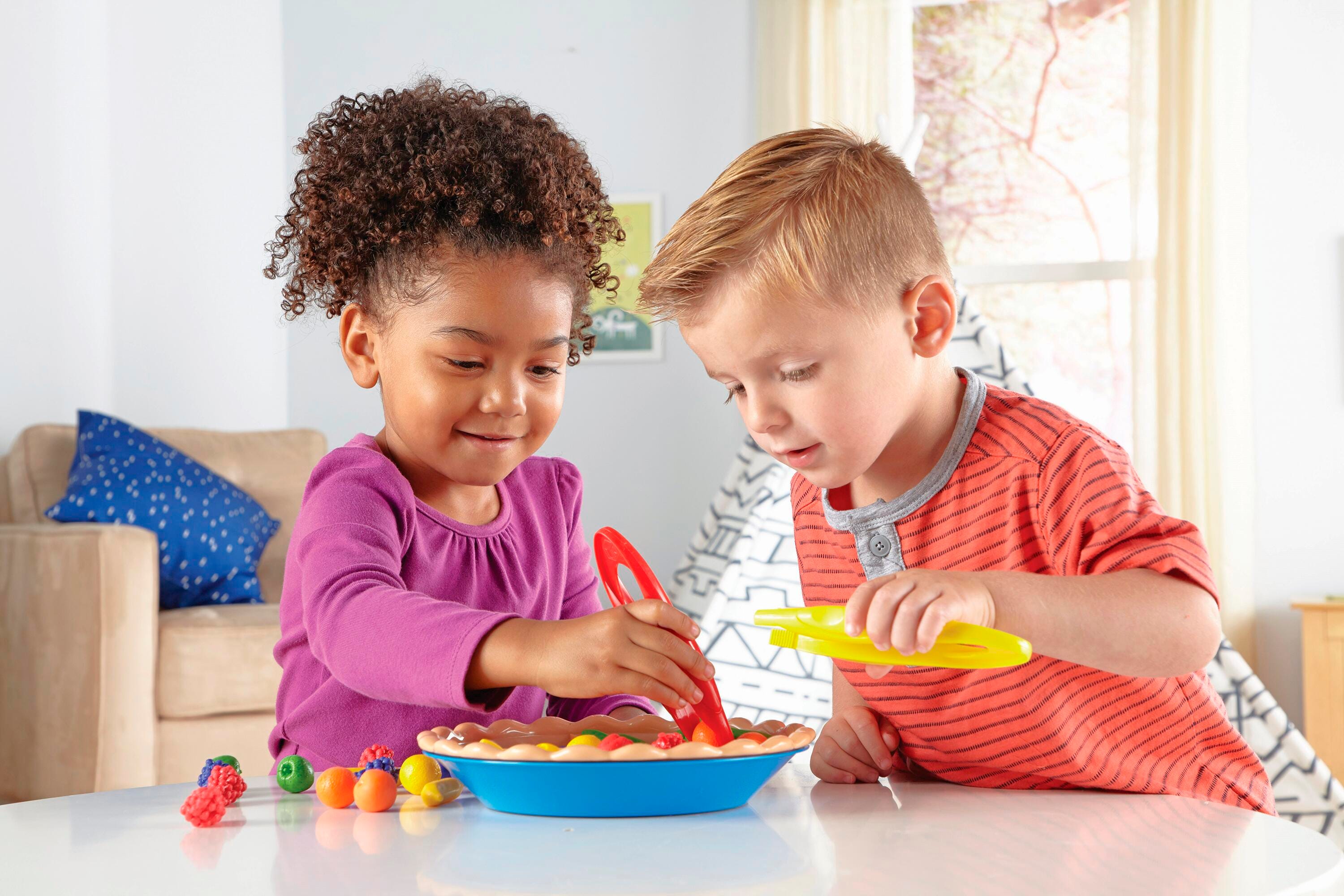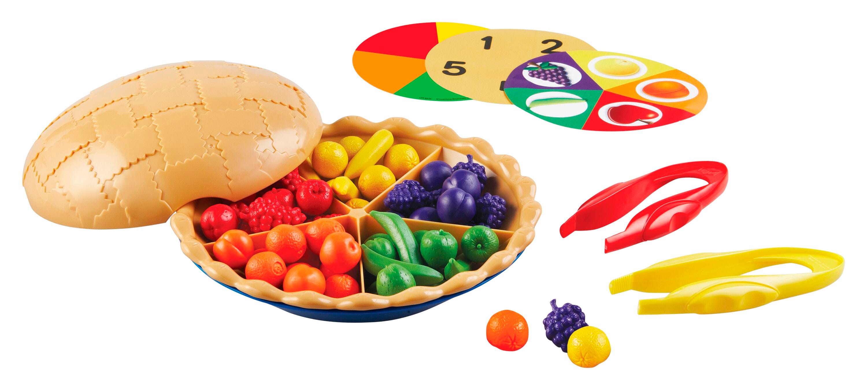Description Learning Resources Super Sorting Pie teaches early number skills and attributes (colors and fruit shapes). Place the sorting cards at the bottom of the pan to provide visual cues that support student success. The top crust becomes a bowl to conveniently hold counters that are not in use. Jumbo tweezers reinforce fine motor skills and make sorting fun. This set includes 60 counters (7 fruits in 5 different colors), durable 8-3/4 inch plastic pie, removable divider, 3 double-sided sorting cards, 2 jumbo tweezers, and an activity guide. Recommended for ages 3 and up.Features Teaches early number and sorting skills by providing different colors and fruits that can be placed in different categories Fruit counters in 5 bright colors make counting and sorting activities more engaging Pie plate with cover & removable divider allows you to change the activity based on learning goals Durable plastic material ensures lasting use Recommended for grades PreK and up Includes: