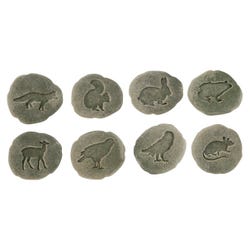 Each of these stones has the raised footprint of an animal on one side and an image of the animal indented into the other. Take the stones on a group walk to compare them with any animal tracks the children discover (or prepare some of your own if needed). Press the footprint into the ground to check, then flip the stone over to identify what animal left the marks. Replicate the same treasure hunt by leaving trails of footprints in the outdoor area of your setting. What animal might the children find at the end: fox, squirrel, rabbit, frog, deer, hawk, owl or mouse? The footprints are made from a unique stone mix and are robust enough to be used throughout an early years setting, both inside and outdoors. Contains eight double-sided stones. (3 inches) Age 2+.Includes 1 of Each Woodland Footprints Stone: