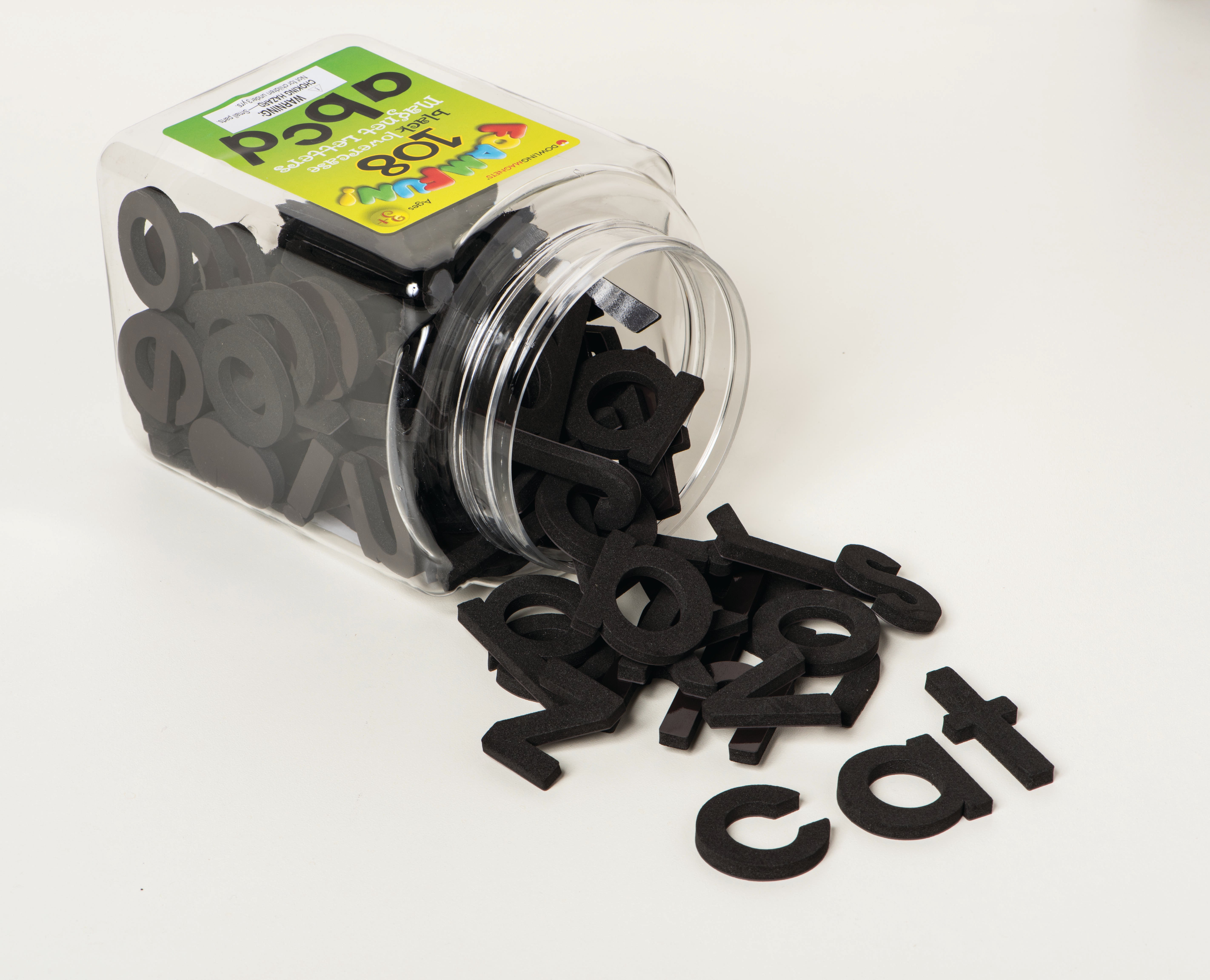 Dowling Miner Magnets Foam Fun Lowercase Black Magnet Letters offers a single color set to support students having special needs. The black letters provide higher contrast against magnetic-receptive whiteboards and chalkboards. Grades PreK and Above, Ages 3 and Above. Set of 108.Features