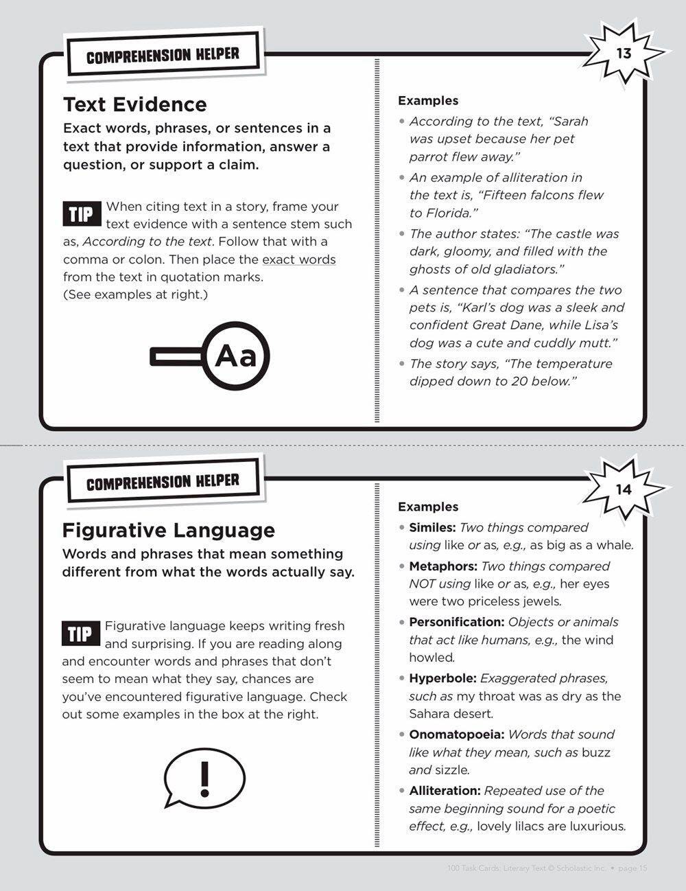 Scholastic 100 Task Cards: Literary Text, Grades 4 to 6