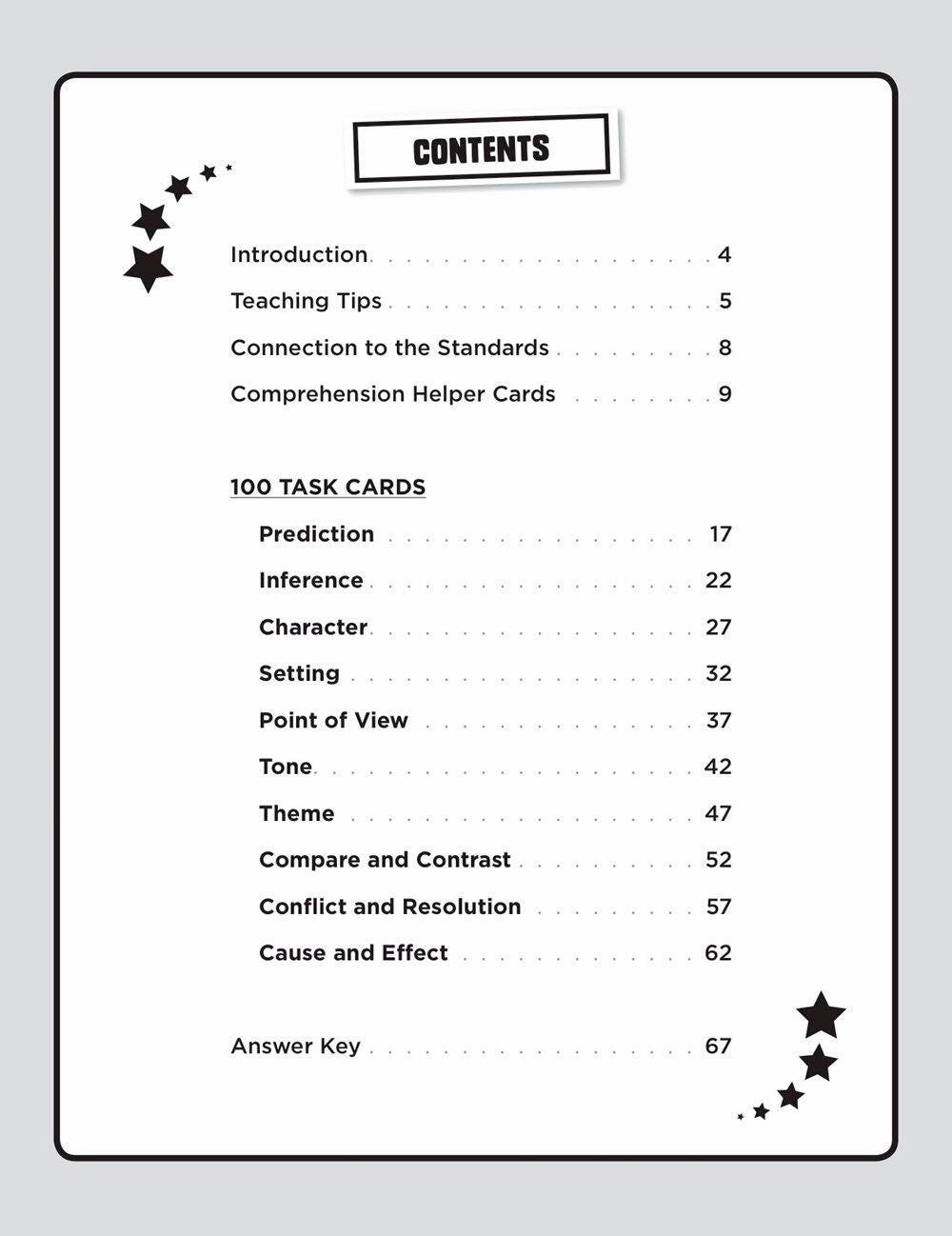 Description Give students the tools they need to meet-and exceed-the new language-arts standards in just ten minutes a day! Each book in this series contains 100 reproducible cards stocked with high-interest mini-passages and key questions to quickly hone comprehension skills. Focus topics include concepts of character, setting, theme, mood, tone, point of view, and much more. 80 pages. Grades 4-6.Features Perfect for whole-class, group, or independent learning Fascinating, fact-based content is sure to motivate all learners A great supplement to any language arts program