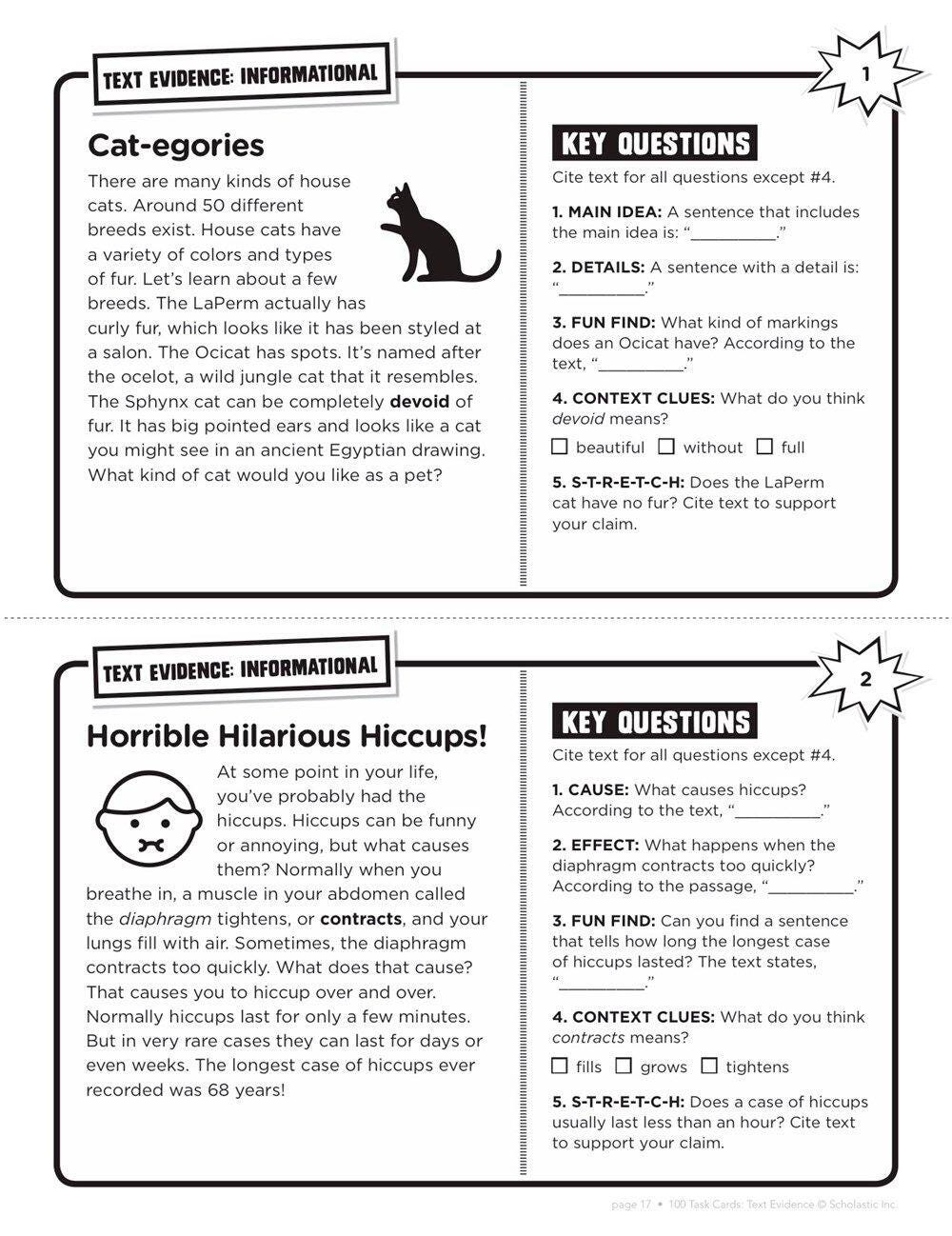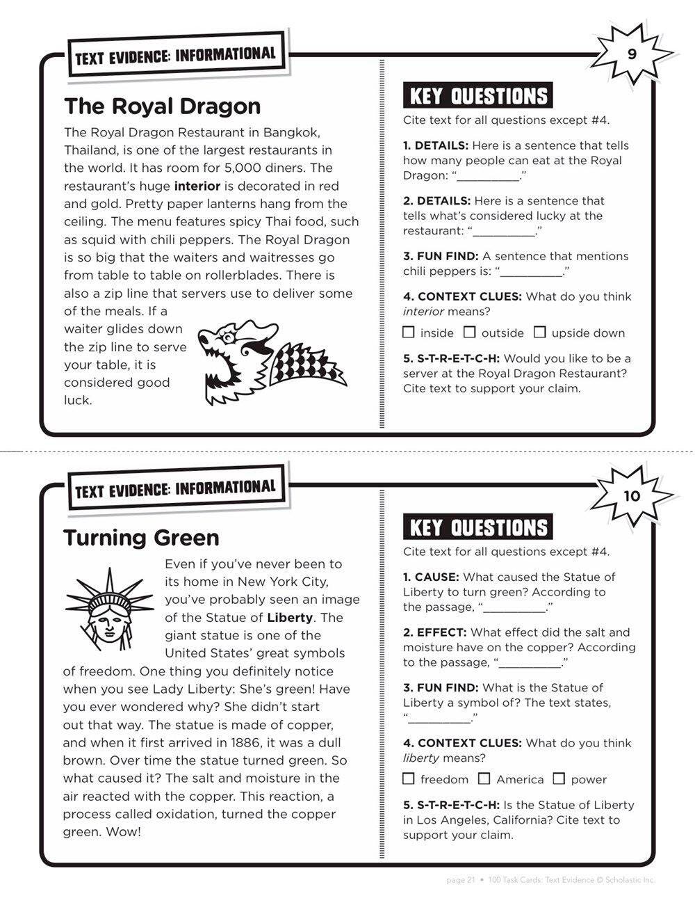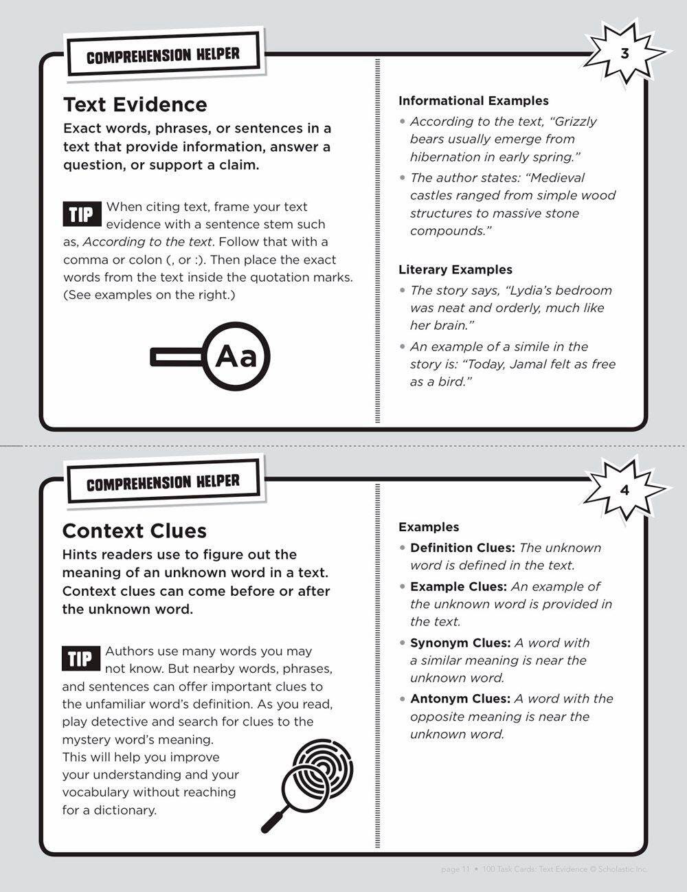 Scholastic 100 Task Cards: Text Evidence, Grades 4 to 6