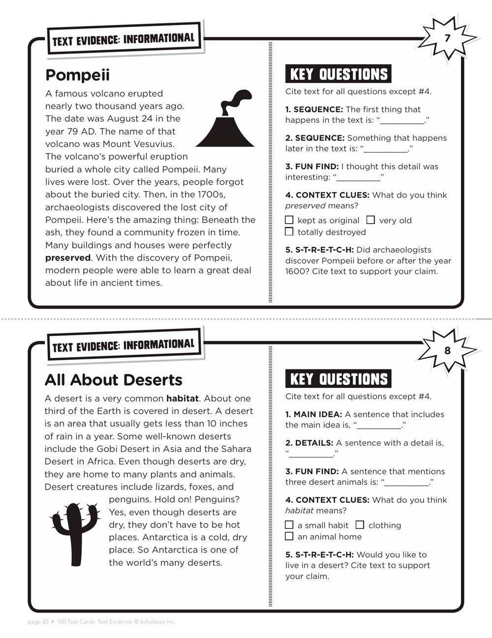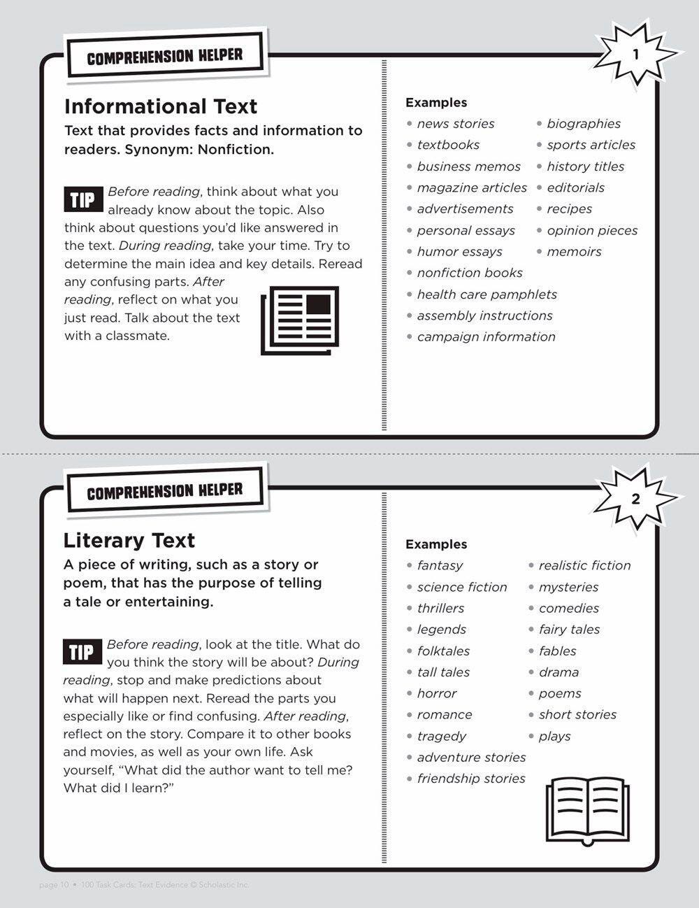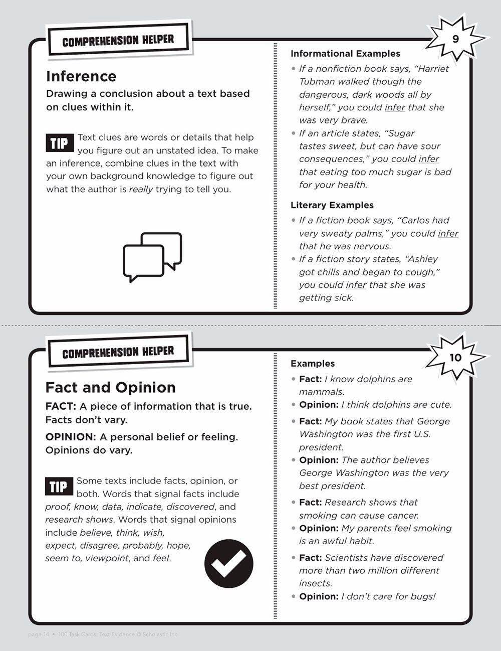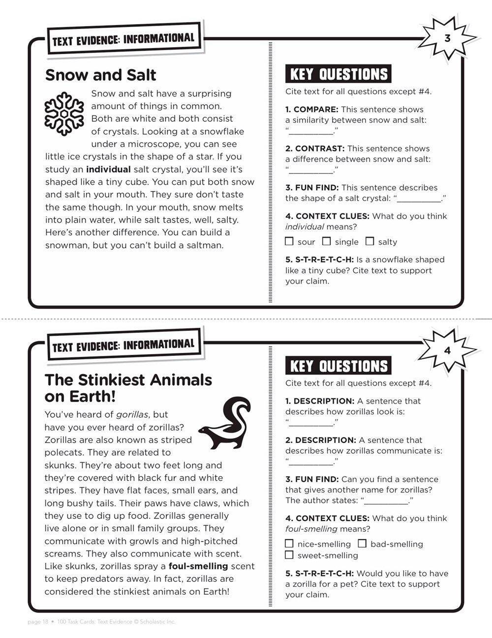 Scholastic 100 Task Cards: Text Evidence, Grades 4 to 6