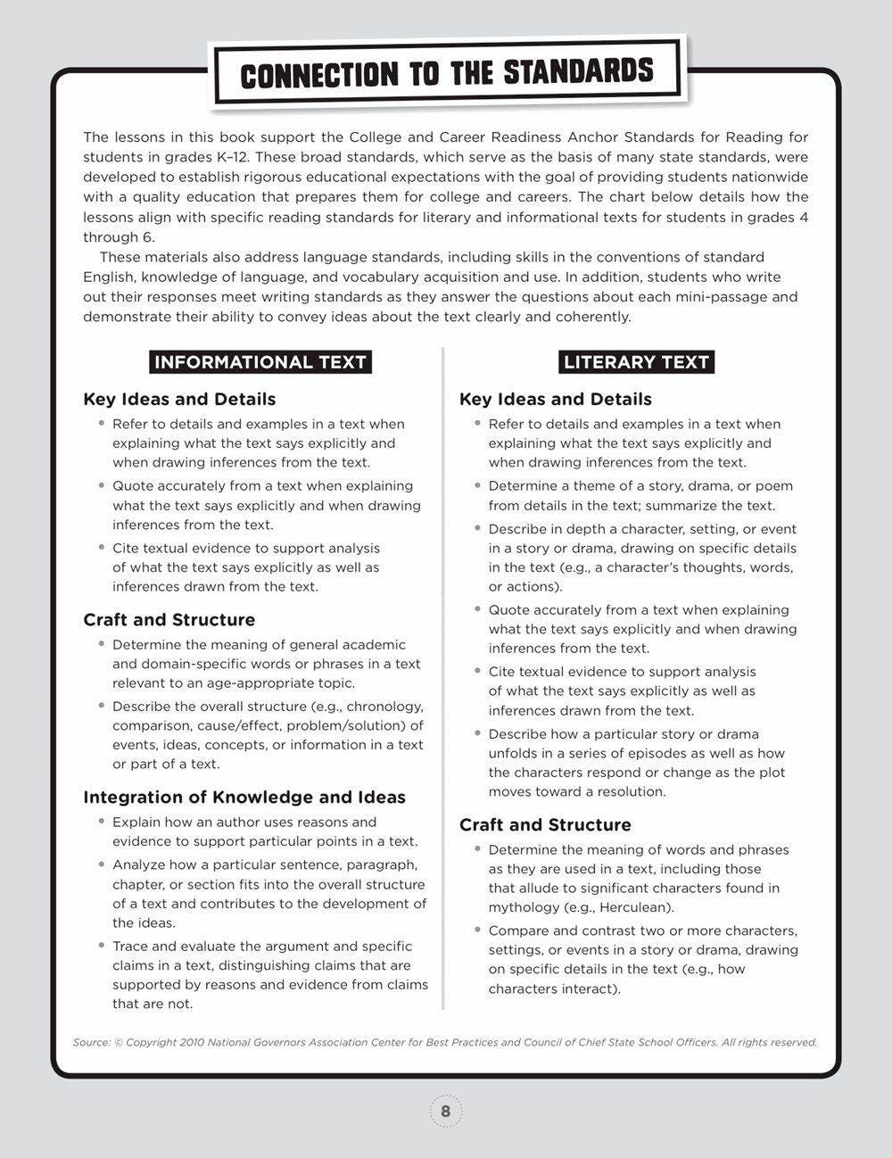 Description Give students the tools they need to meet-and exceed-the new language-arts standards in just ten minutes a day! Each book in this series contains 100 reproducible cards stocked with high-interest mini-passages and key questions to quickly hone comprehension skills. Cards provide guided support to help students identify and effectively cite text evidence across a variety of genres. Content is super-engaging to motivate even your most reluctant readers. 80 pages. Grades 4-6Features Perfect for whole-class, group, or independent learning Fascinating, fact-based content is sure to motivate all learners A great supplement to any language arts program