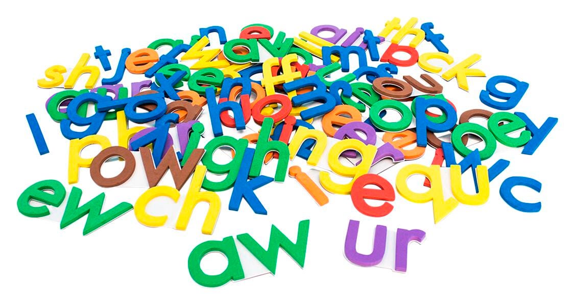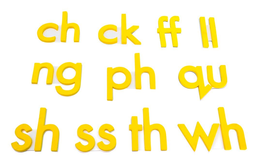 Description Giant Rainbow Phonics are a fantastically engaging magnetic resource to teach children about letters and sounds! The magnetic letters are a fantastic classroom tool to gradually develop children’s understanding of how letters can be joined together in different ways to create new sounds and how more complex words can be constructed. The set includes consonants, vowels, digraphs, vowels, changeable vowels, r-controlled vowels and magic e vowels. The size of the letters makes them ideal for displaying in the classroom or for use in activities with larger groups of children. Contains 84 pieces. Appropriate for ages 4 years and up.Features Excellent resourcefor teaching children progressively about different letters and sounds Size of the letters is perfect for use as a classroom aid and for large group learning and activities Letters are magnetic and can be stuck to any magnetic surface