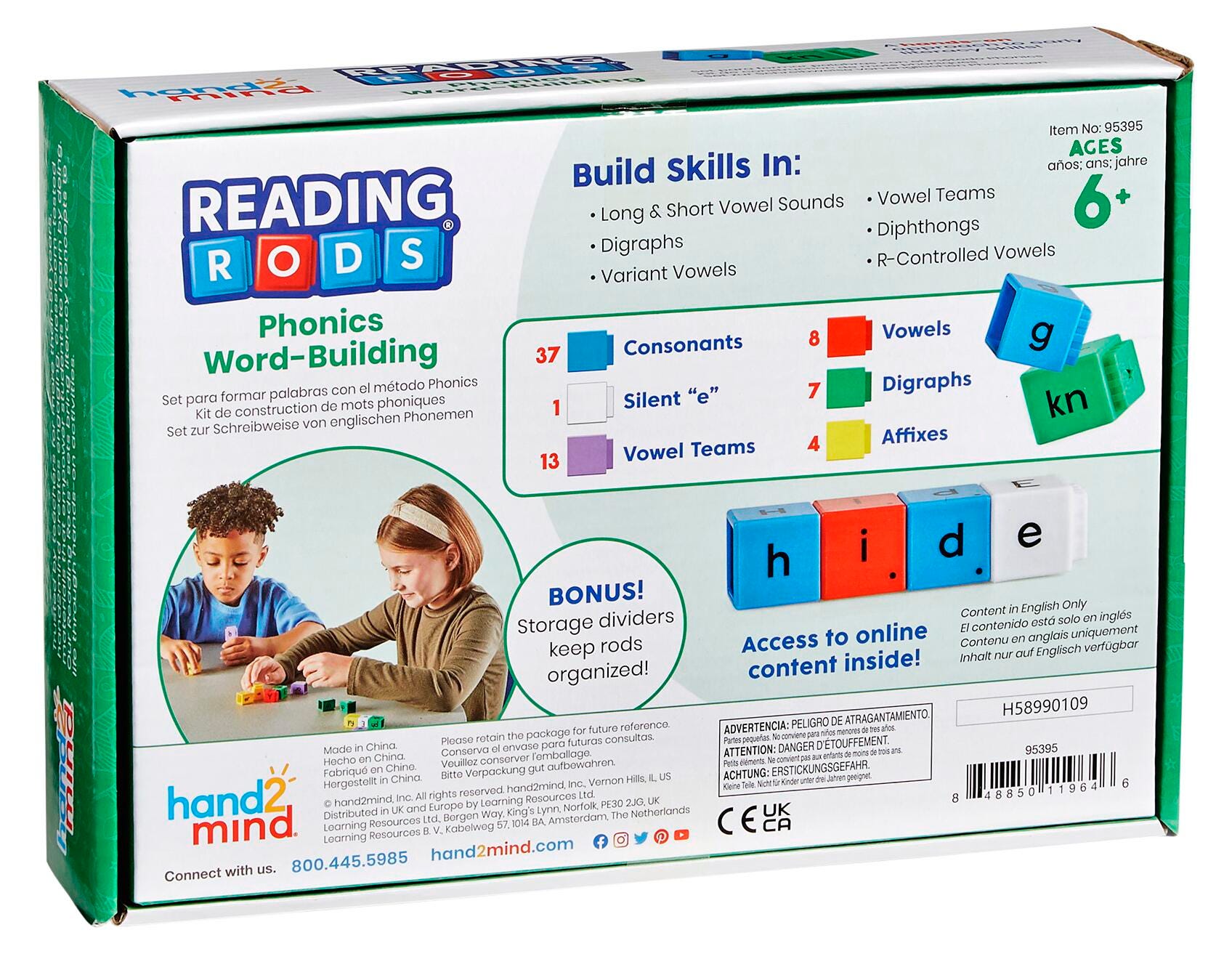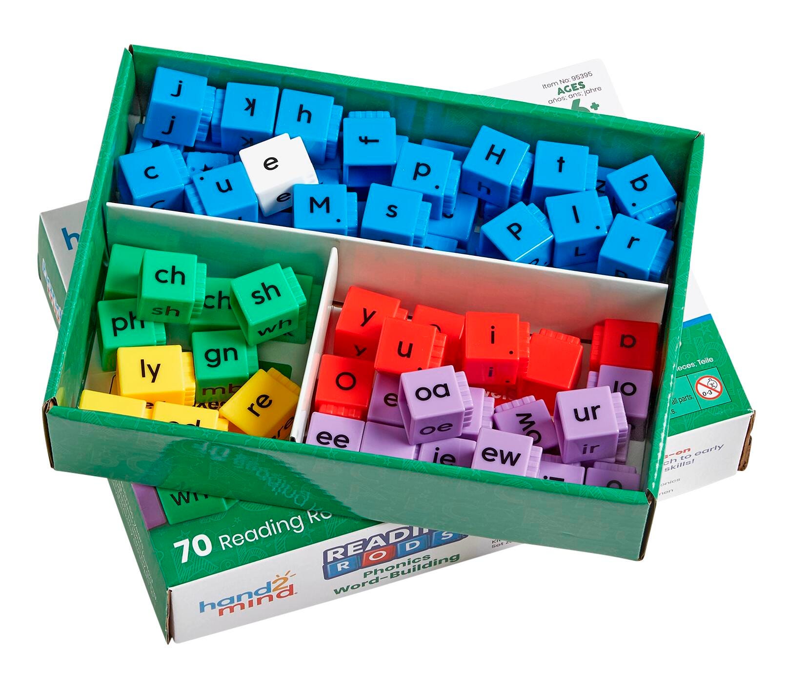 Description These Phonics Word-Building Cubes offer numerous opportunities for students to explore letter patterns with active, hands-on activities. Cubes are color-coded by phonics: vowels, consonants, silent "e", consonant blends, vowel digraphs, and word family chunks. Use for independent or center practice in word work, grammar, vocabulary, or writing stations. Great for early reading and writing practice, homework help, or for use during breaks and weekends.Features 70 color-coded rods include consonants, vowels, vowel teams, and affixes Sturdy, partitioned box keeps rods organized Includes an activity guide Includes: