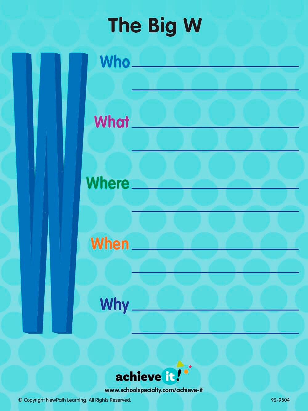 The double-sided Big W And Framing Your Character Graphic Organizer is a must-have companion for writers of all ages and experience levels. Whether you're crafting a short story, a novel, or even a screenplay, this versatile organizer is here to support your students' creative journey. Organizers measure 9 x 12 inches.An ideal resource for use during National Literacy Month in September.