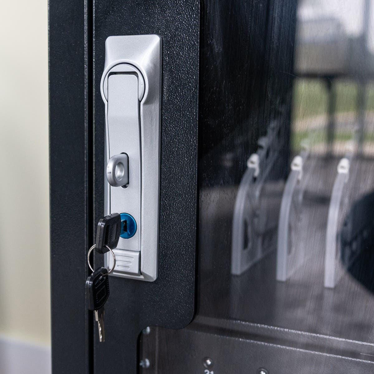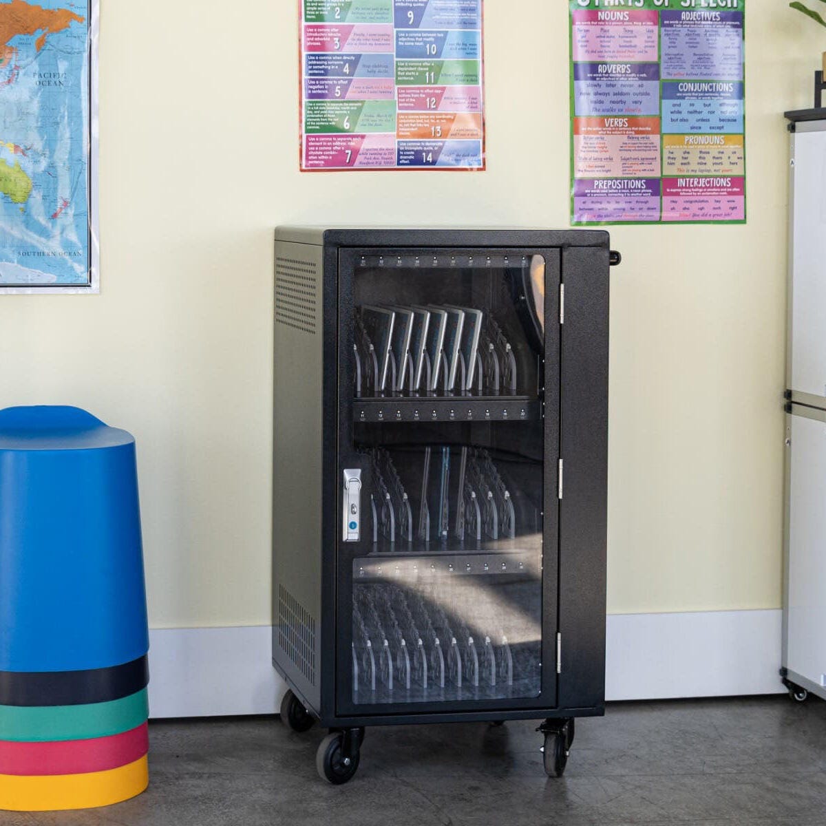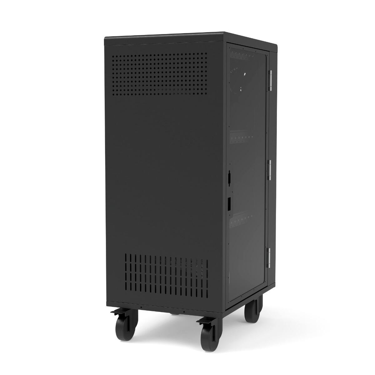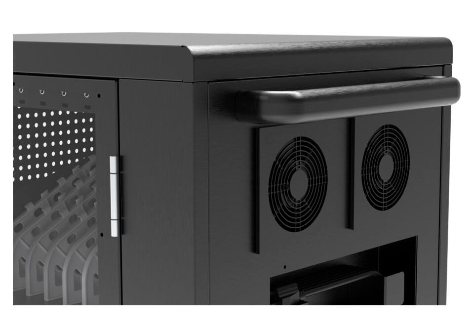 Its innovative design features front-mounted USB-C charging outlets – one per divider slot – that reduce cable clutter and make it incredibly easy to access power and plug-in devices. An additional benefit is the front-mounted USB-C ports eliminate the need for power adapters (a.k.a power bricks), which can block adjacent outlets on a traditional power strip, limiting the number of devices you can plug in. Users can utilize any compatible USB-C to USB-C, USB-C to USB-A, or USB-C to lightning cable of their choosing. Additional highlights include a transparent front door for easy viewing of contents. Dual ventilation fans provide cooling airflow.