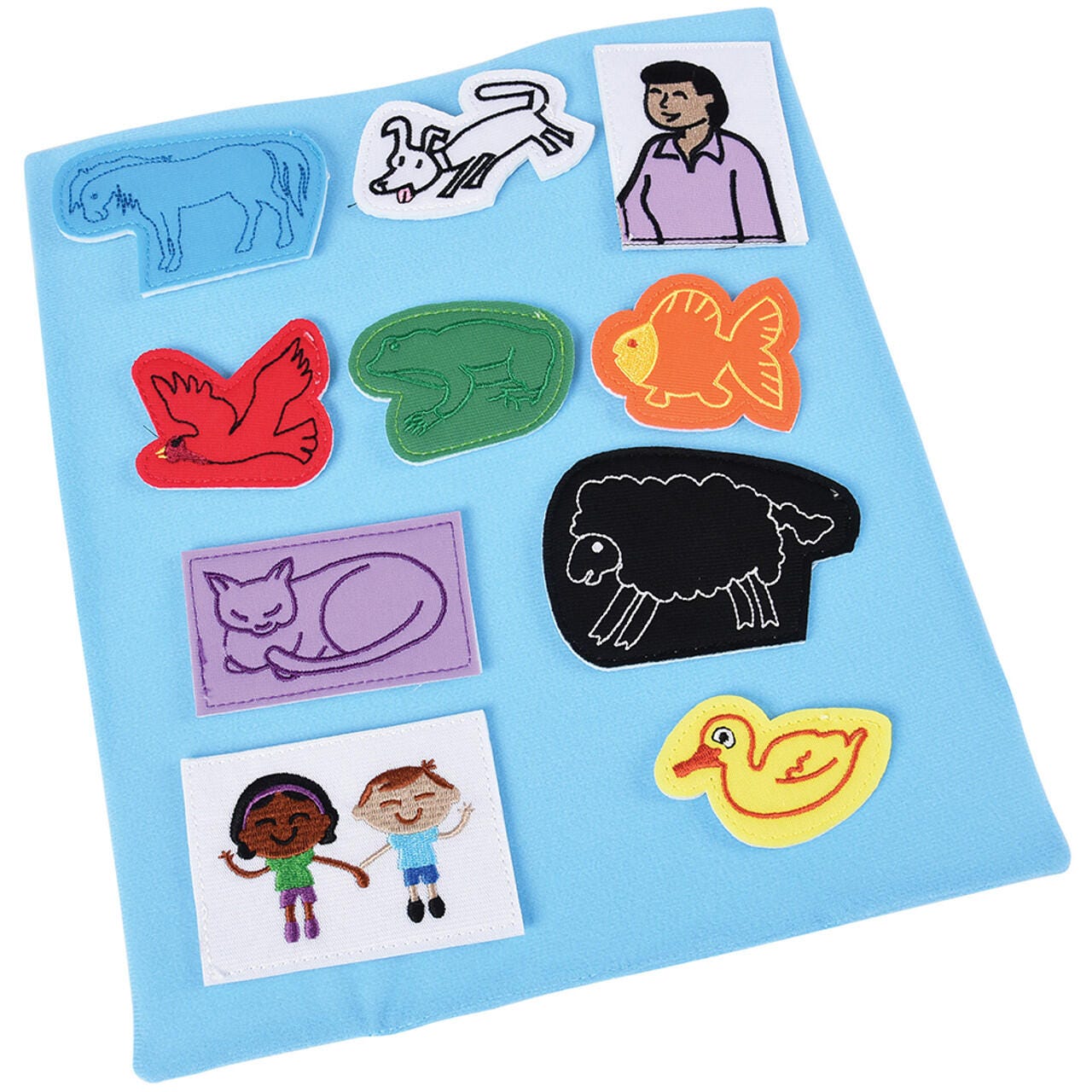 - Fabric storytelling pieces with hook-and-loop stick firmly to brown felt "background" blanket to enhance reading and help learners recall objects and scenes in story
