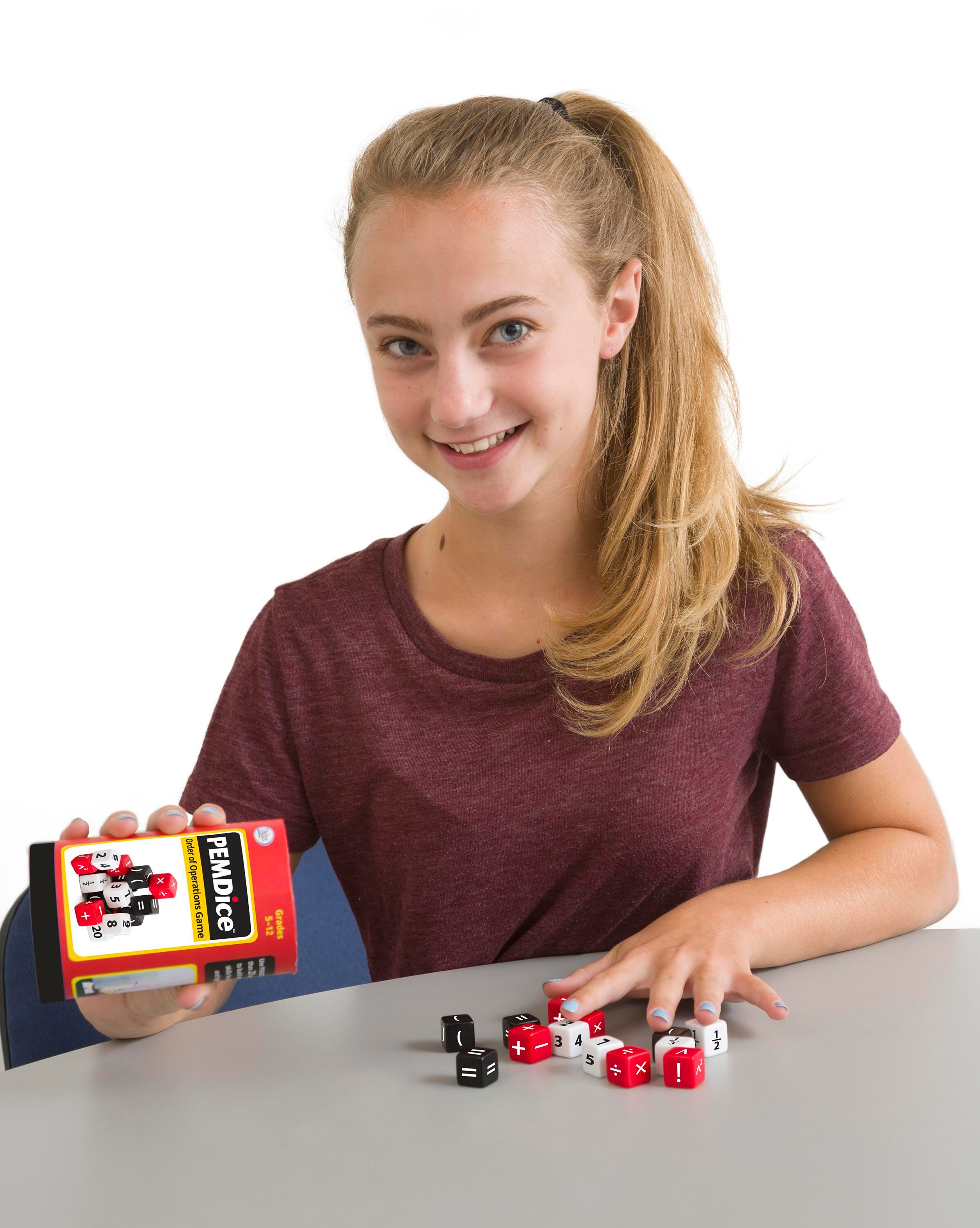 Your students need to understand the order or operations (PEMDAS). PEMDice is a great game to help them practice. Games comes with 30 dice featuring numbers, fractions, operations, parentheses and more!