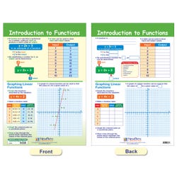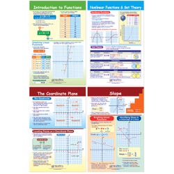 The Graphs & Functions Bulletin Board Chart Set includes the following 4 double-sided, laminated charts: