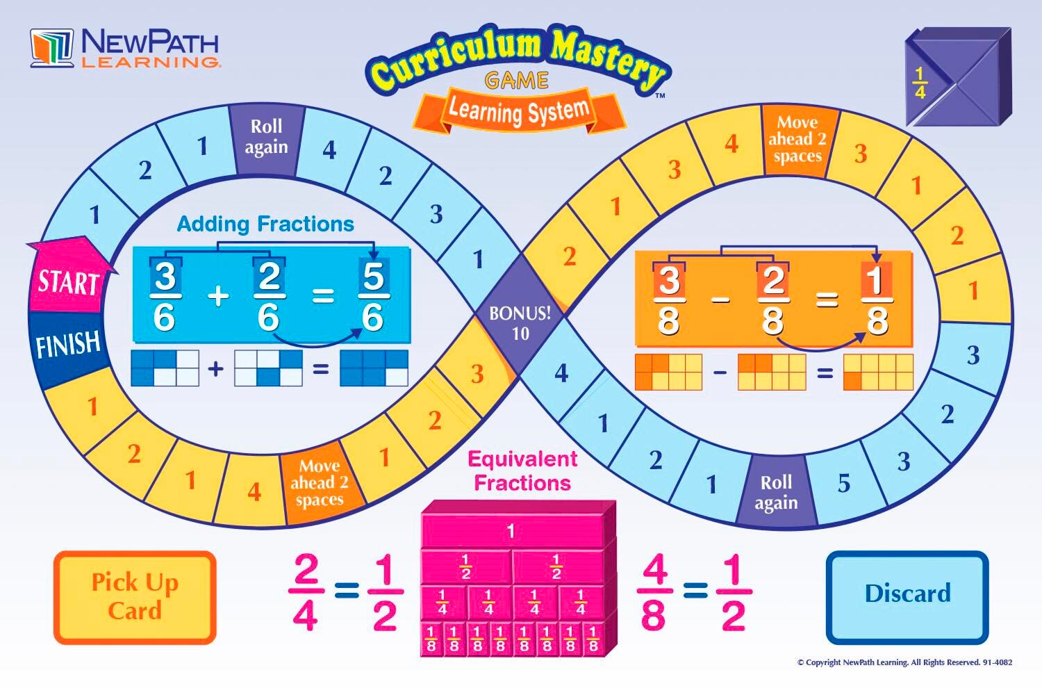 The NewPath Learning Grade 4 Math Curriculum Mastery Class-Pack Game is written by teachers using research-based principles and is extensively classroom-tested to ensure efficacy. Contains enough materials for an entire class of up to 36 students, including 25 sets of 30 standards-based review cards and 12 double-sided, laminated game boards. Also includes comprehensive Teacher Planning/Resource Guide and a free 1-year Premium Class Online Subscription to access interactive content, activities and assessments. Covers: Place Value; Rounding Numbers; Compare and Order Numbers; Data Analysis; Graphs; Represent Data; Problem Solving; Addition/Subtraction; Multiplication; More Multiplication; Division; Multiplication/Division; Add/Subtract Fractions; Decimals; Decimals/Fractions; Add/Subtract Decimals; Algebra; Evaluate Open Sentences; Geometry; Perimeter; Lines & Angles; Measurement; Money; Elapsed Time; and Calendar.Features