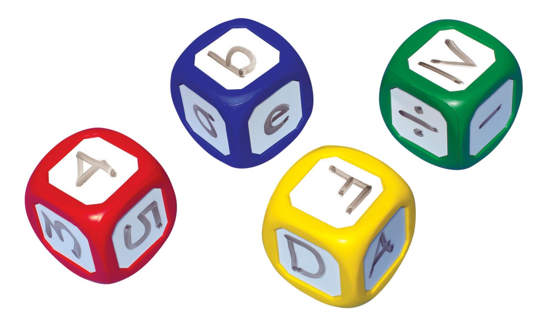 Learning Advantage Write-On & Wipe-Off Small Die enhances literacy, speech and motor skills. It features soft foam edges and magnetic, wipe-erase sides. The die measures 2.25 in and is sold as 4 per set in four different colors: red, yellow, green, and blue.