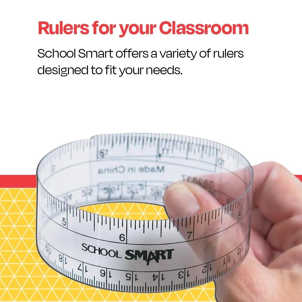 This School Smart flexible plastic ruler is marked to 1/16 inches on one side and metric on the other. Thin, flexible, and see-through plastic makes our bendable rulers durable and easy to use. A flex design allows the durable metric ruler to be easily bent without breaking for use in tight corners or at odd angles. Each scale ruler has clearly black outlined inch and centimeter marks for consistent measurements each time. Kids and adults love the user-friendly 12 inch measuring tool.