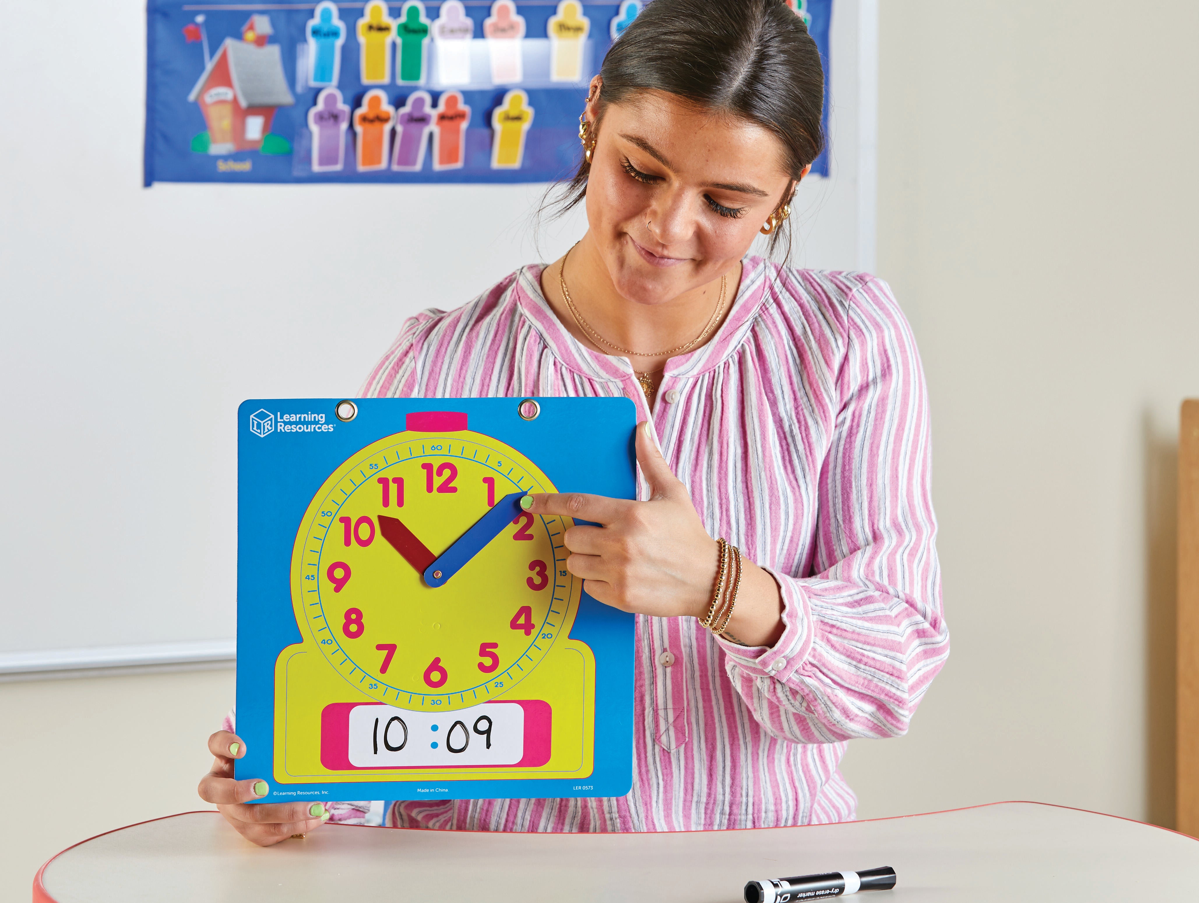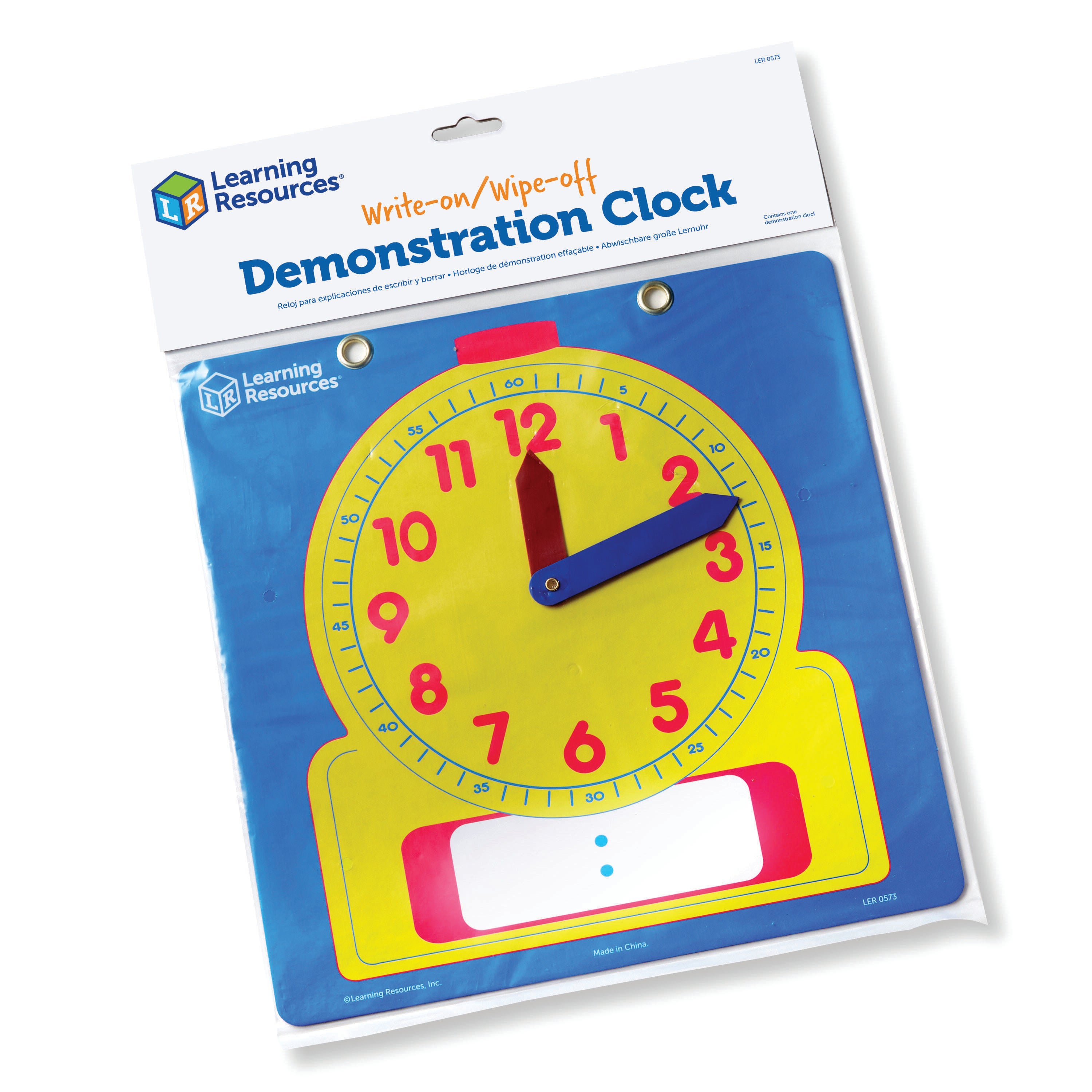 Learning Resources Write and Wipe Demonstration Clocks are heavy-duty laminated clock that feature movable plastic hands and a place to write the digital time. Designed easy for teachers and students to manipulate, for the perfect hands-on learning experience for early learning classrooms. Clock measures 12 L x 12 W inches. Ages 6 and up.