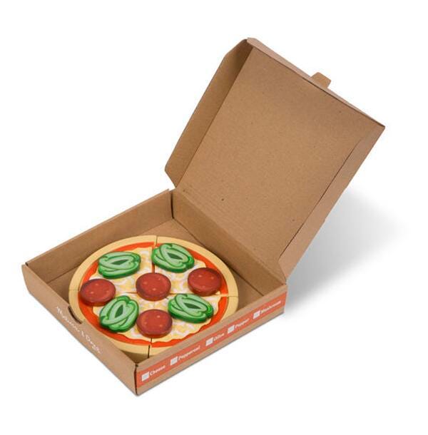 Create made-the-way-you-like-it pretend pizza with 34-piece wooden play pizza-making set with counter/pizza oven