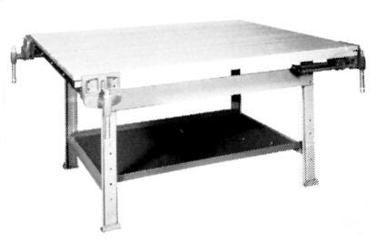 Montisa Multi-Purpose Workbench in gray measuring 64 x 54 x 33-1/4 inches features laminated hard maple top of dimension 64 x 54 x 2-1/4 inches. It includes steel leg base unit with stringers measuring 48 x 36 inches and steel shelf featuring 3-1/2 x 7-1/8 inch jaws.