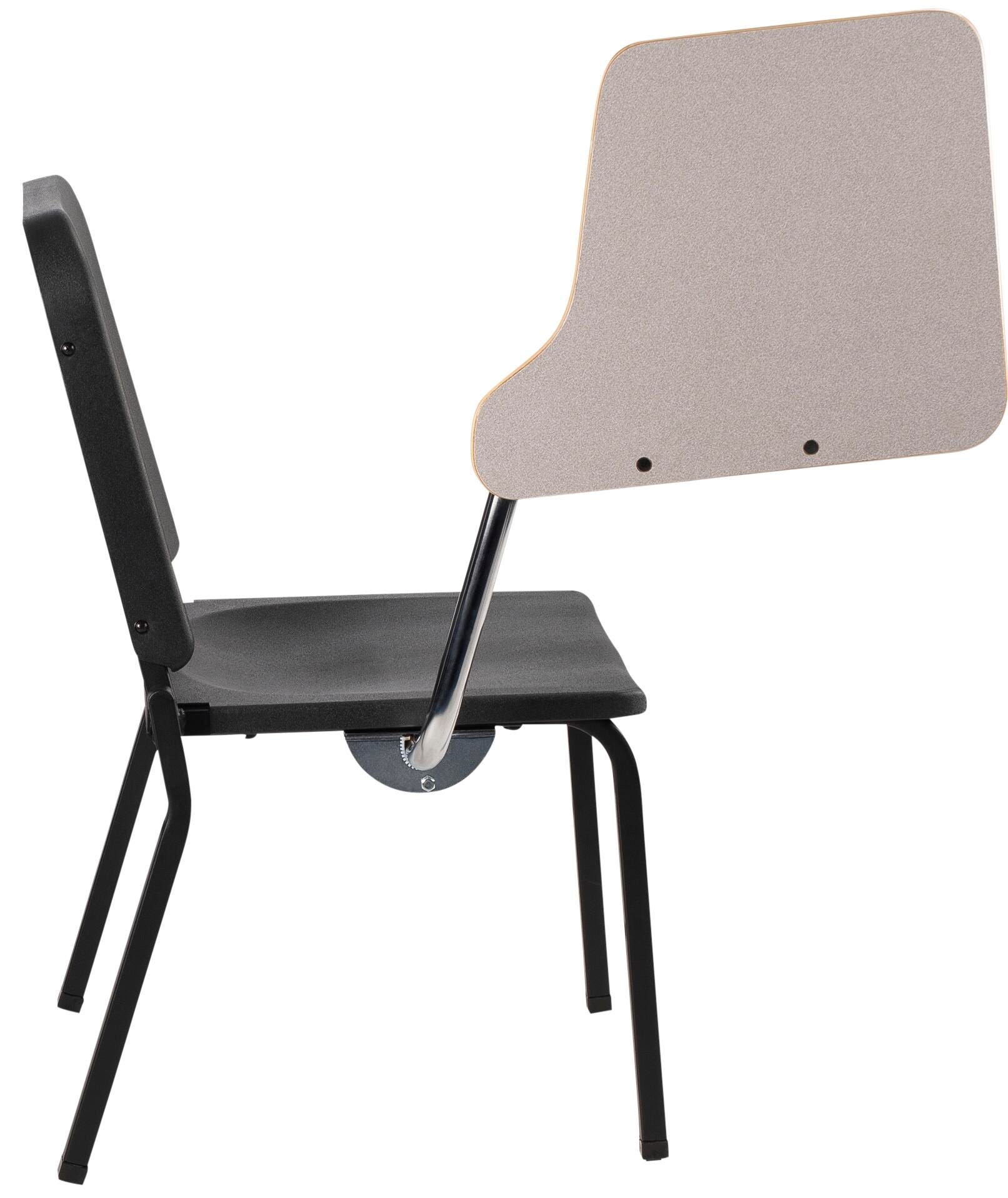 Description The NPS Melody Black Music Chair has a band pitch style seat to back angle of 97 degrees allowing for maximum breathing capability. Features an arm that adjusts to 4 positions: writing, upright, entry, and behind.Features Ergonomic chair features lightweight soft plastic polypropylene shell to promote good circulation Helps to relieve pressure points and offer greater flexibility in the upper back while supporting the lower back Perfect choice for any music room