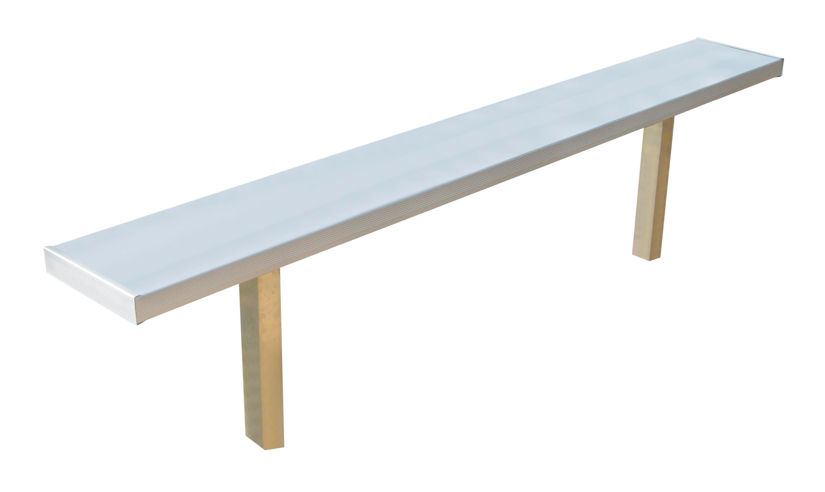 National Recreational Systems Aluminum Permanent Bench without Backrest, Square Tube and Angle Leg, In-ground Mount, 6 Feet, Item Number 2107351