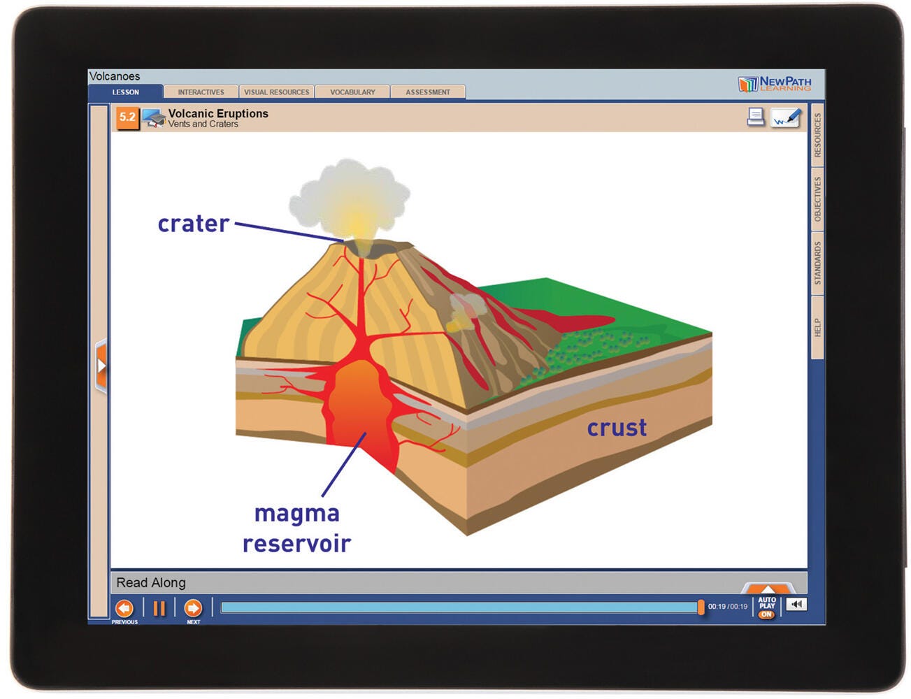 NewPath Learning Volcanoes Flip Chart and Online Multimedia Lesson, Grades 6 to 10