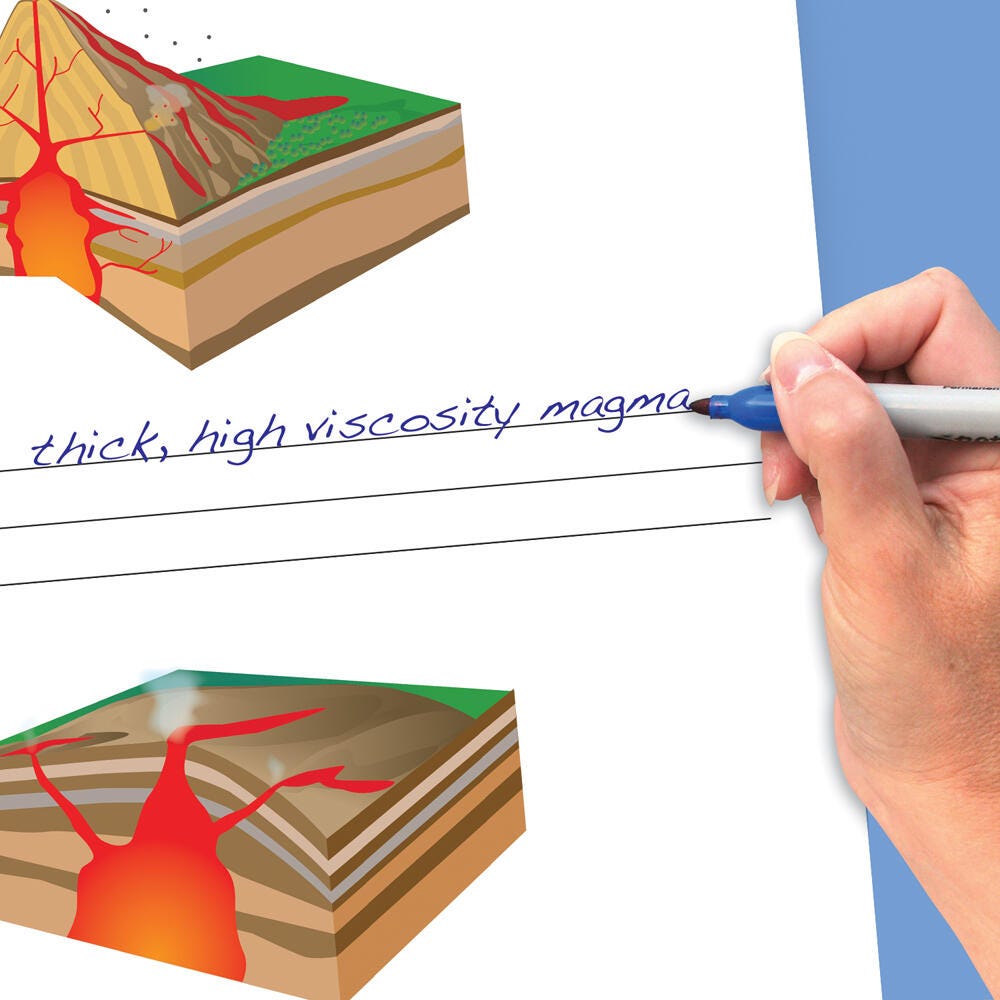 Volcanoes Flip Chart Set combines visual labeled graphics, easy-to-read text, glossary, and hands-on write-on/wipe-off activities to complement all student learning styles