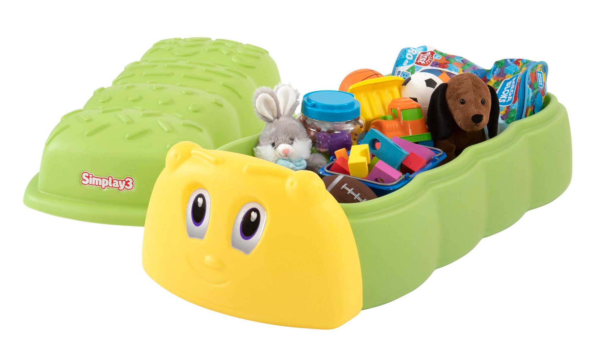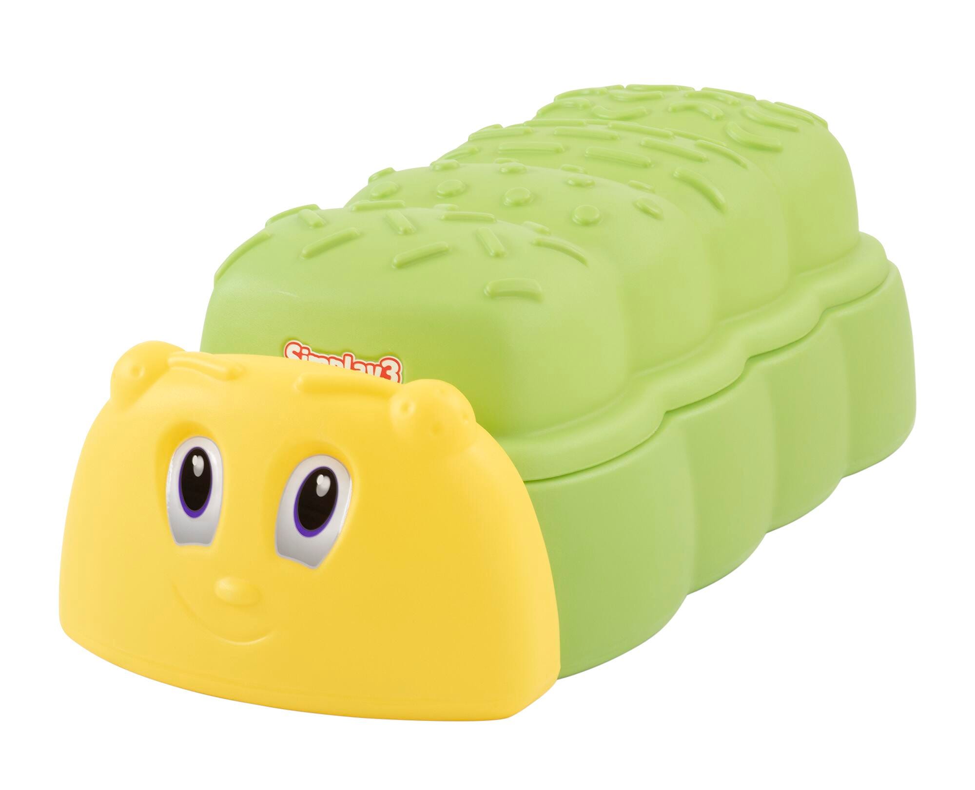 Description Inspire hours of imaginative play with this caterpillar-shaped play center that reminds kids of The Very Hungry Caterpillar. Its elongated shape and size make it a perfect fit for most spaces, indoors or out. Great for sand, building blocks, balls, puzzles and more. After playtime is over, the toy box provides stylish and convenient storage. Measures 44 x 20 x 14-1/4 inches. Appropriate for ages 12 months and up. Minimal assembly required.Features Elongated shape and size is a perfect fit for most spaces Great for sand, water and building block playtime experiences Provides convenient and stylish storage Durable, double wall plastic construction