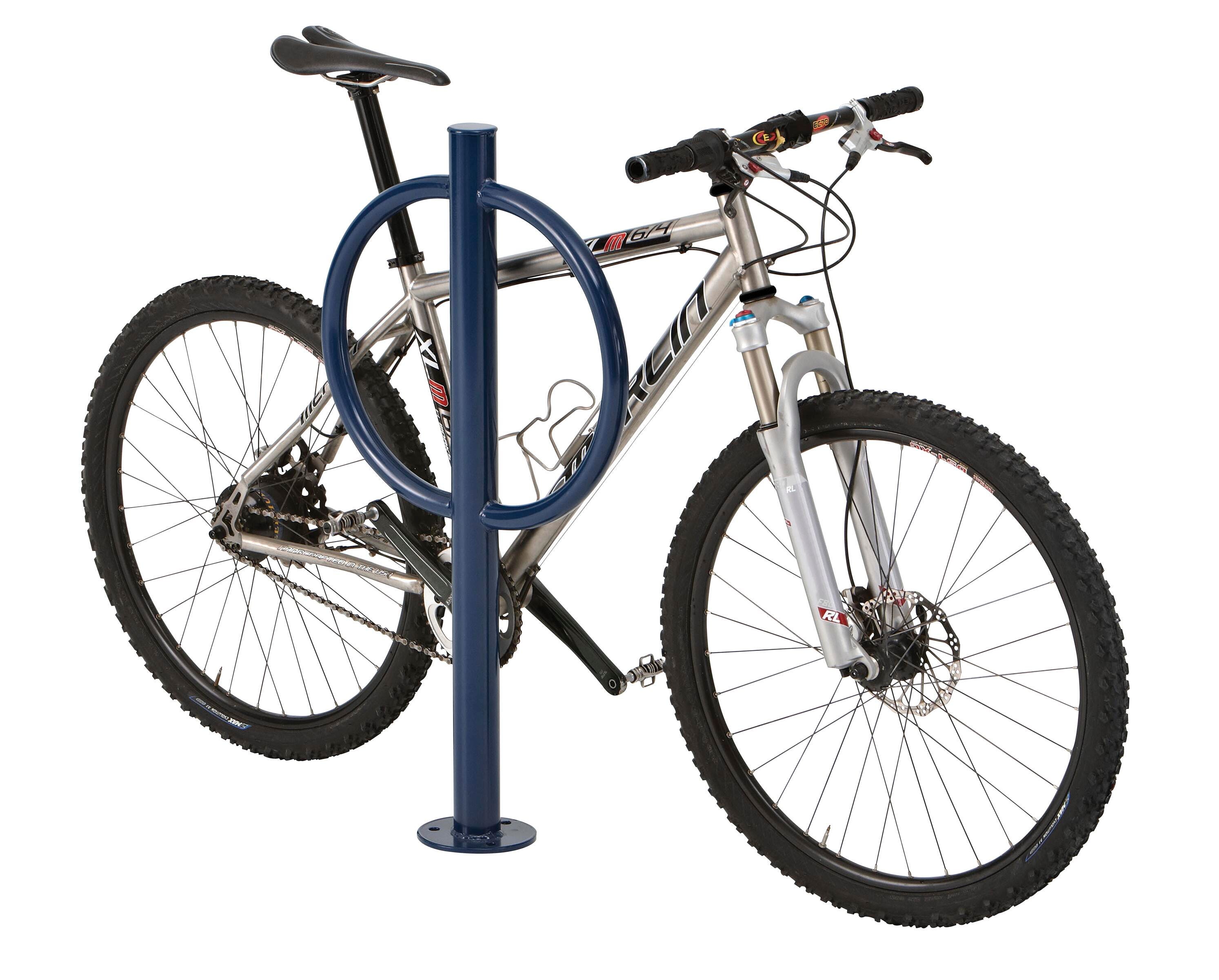 This stylish bike rack by UltraSite takes up minimal space and provides a perfect place to lock up bikes at parks, playgrounds, schools, or other places of interest.
