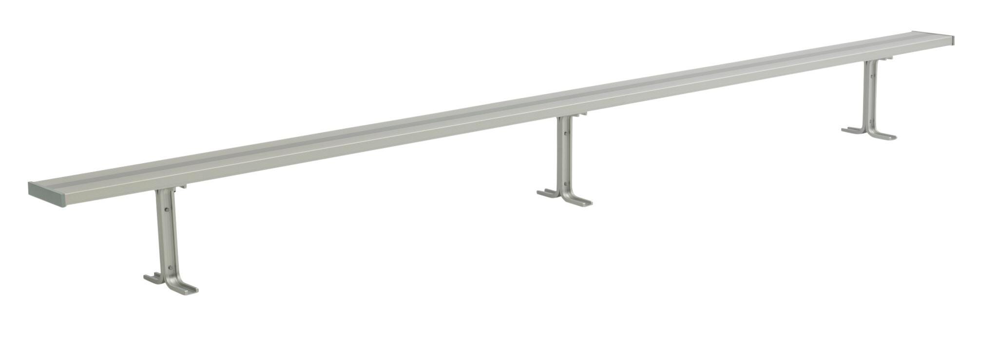 The National Recreation Systems 21-foot permanent aluminum bench is ideal for school campuses, parks, transportation stops, and more!