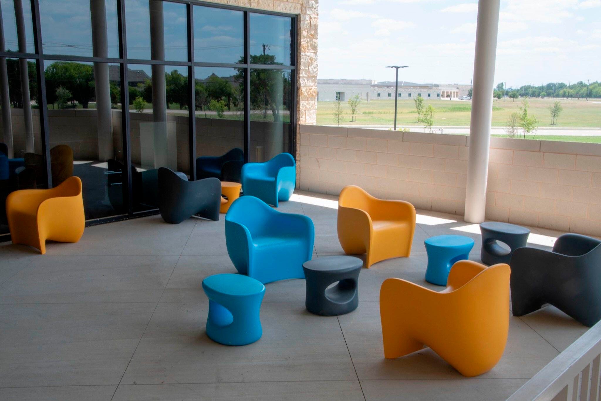 Amped Chair is a one-piece hard plastic chair that makes a design statement. This chair sits at a comfortable height for teens and adults. Non-marking rubber legs protect your indoor and outdoor floor surfaces and provide excellent grip on the base to keep the chair stationary. Engineered for year round outdoor use and exposure to sun, snow, sand, salt, and rain. This chair has a drain hole at the back of the seat to promote quick drying and immediate use after it becomes wet. No need to cover this chair when not in use. One-piece design provides the ultimate in tamper resistance and no need for assembly or missing parts down the road.