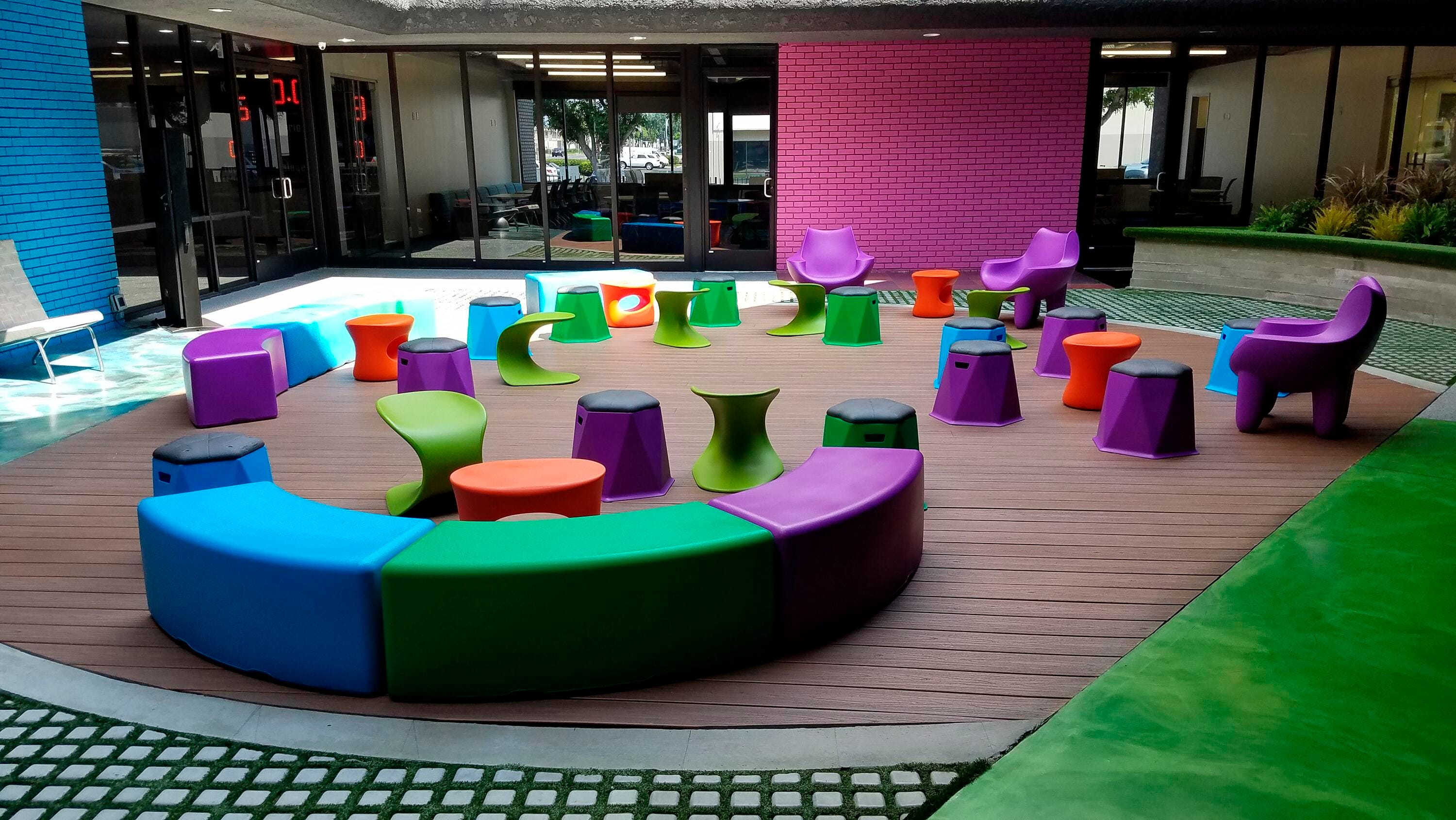 Mibster Chair is a one-piece hard plastic chair that makes a design statement. This chair sits slightly relaxed and has great ergonomic contouring of the seat surface for comfort. Non-marking rubber legs protect your indoor and outdoor floor surfaces and provide excellent grip on the base to keep the chair stationary. Engineered for year round outdoor use and exposure to sun, snow, sand, salt, and rain. This chair has a drain hole at the back of the seat to promote quick drying and immediate use after it becomes wet. No need to cover this chair when not in use. One-piece design provides the ultimate in tamper resistance and no need for assembly or missing parts down the road.