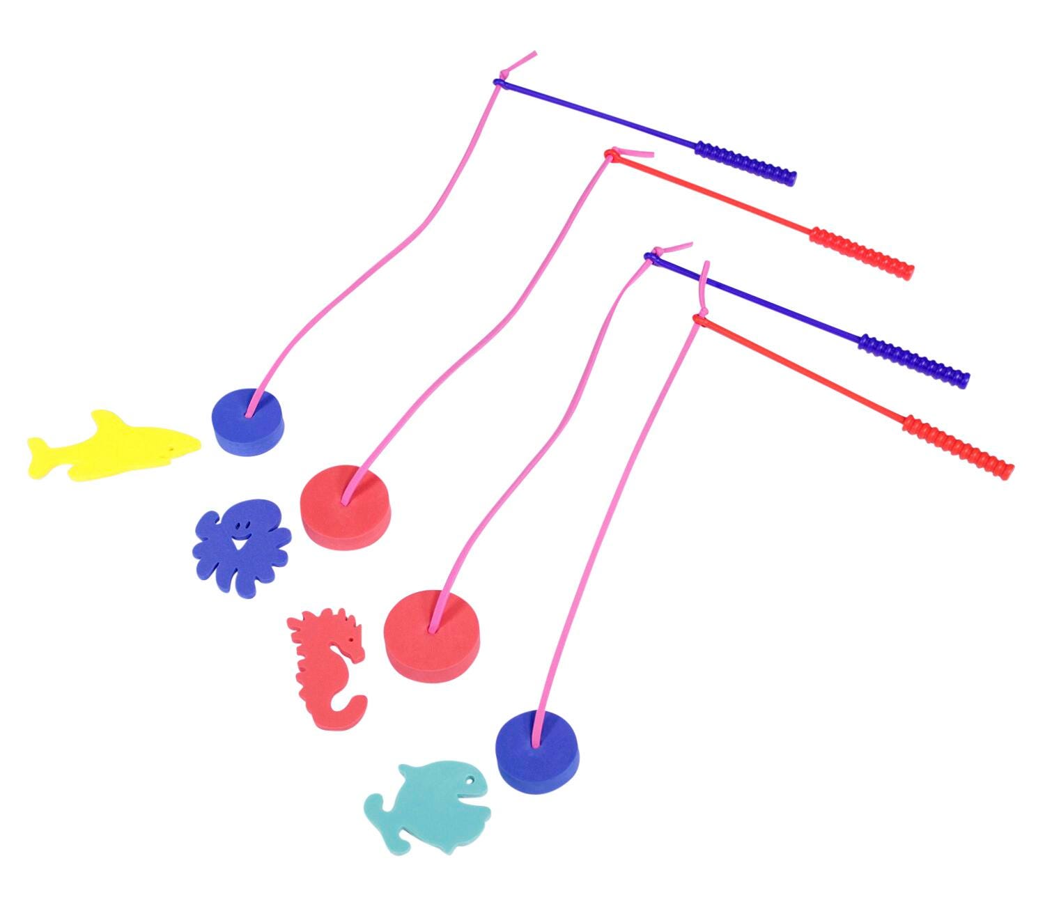Edushape Fish 'N Fun offers hand-eye coordination and vocabulary practice as children fish for fun foam creatures! Toss the foam sea creatures into the water, attach the wet-and-stick bait to your line, and see what you can catch. This fun fishing game allows you to spell almost any word. The game can be played indoors or out, and the four included fishing rods allow several children to play at once. Encourage social skills and taking turns with this game that can be adapted to any skill level. Includes 4 plastic fishing rods with 8 foam fishing lines, 8 foam 'bait' pieces, and 36 foam fish in assorted colors. For ages 3 years and up.Features