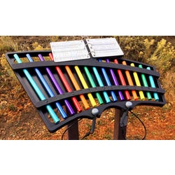 The Serenade xylophone is an audience with the ability to play songs using the color-coded chimes and songbook! Students of all ages can learn to play in 2 different ways, by color or by the annotated notes on the instrument and in the book. This exciting playground xylophone gives the ability to read music without any prior knowledge and lets the learning begin!Features