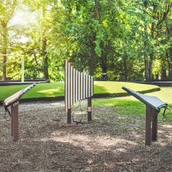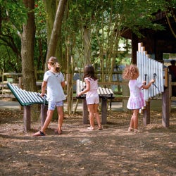 This Freenotes Harmony Park playground instrument collection includes a grouping of smaller-sized xylophones that have fewer keys, but the same high-quality sound as our larger instruments. This playground instrument collection with an in-ground mount is excellent for children and adults alike, and provides space efficiency.Features