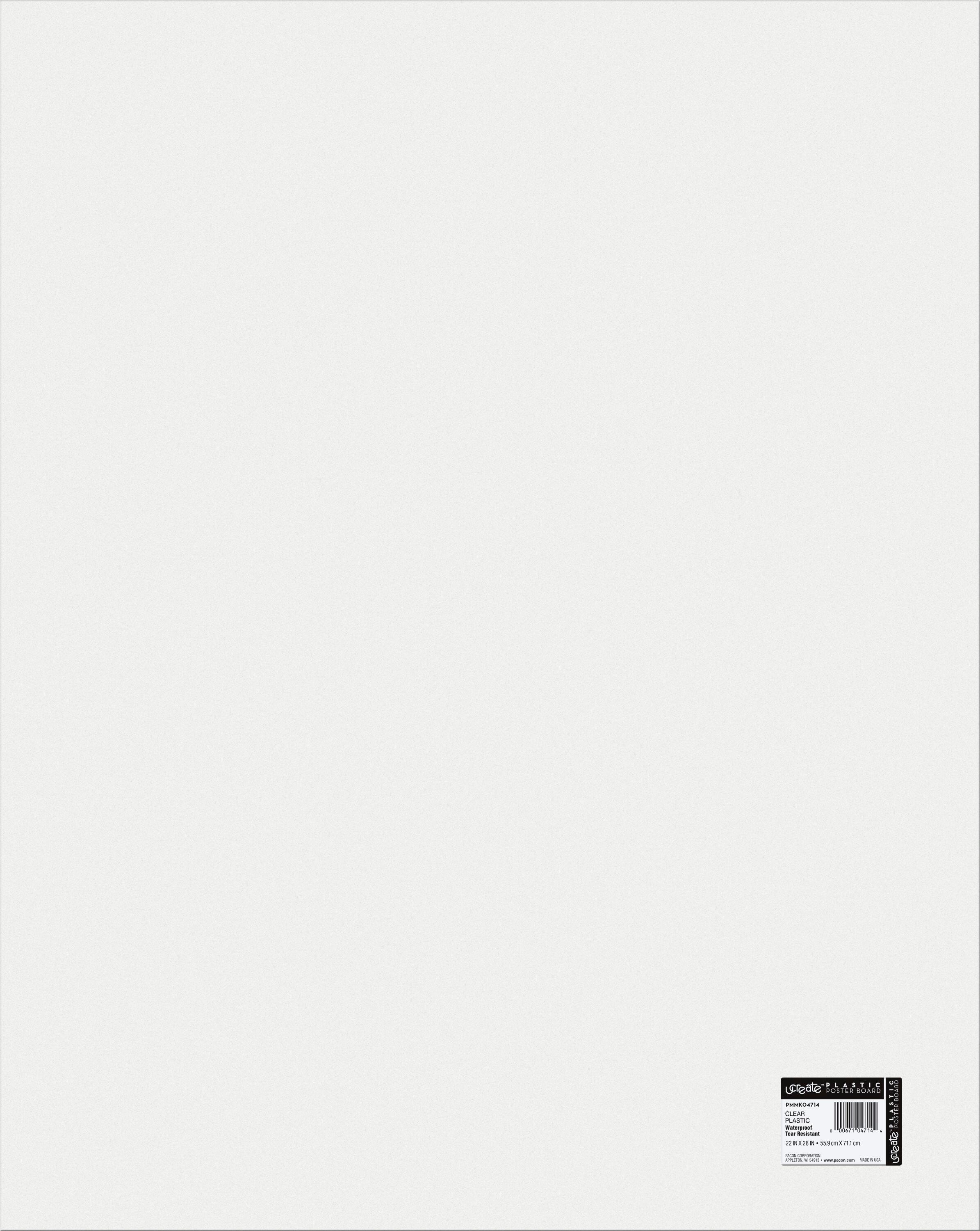 Description Pacon Plastic Poster Board is waterproof, tear resistant, durable and flexible. It accepts all types of media and is perfect for home, office, school and art projects. 12 point polyethylene material is lead free. Pack of 25 boards measuring 22 x 28 inches in clear (opaque).