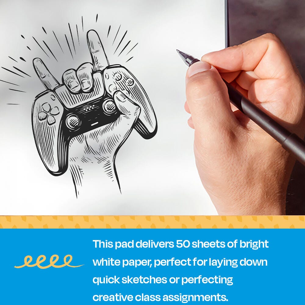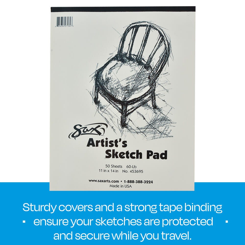 Description Express your creativity in this multi-purpose Artist's Sketch Pad from Sax. Sturdy tape-bound covers on the front and back offer protection, while the inside boasts 50 sheets of fine-toothed white sulphite paper for a splendid drawing surface that readily accepts all dry mediums. The booklet lies flat, and the pages turn easily in the upward vertical position for viewing and accessing the next pages. This pad measures 11 x 14 inches and contains paper with a 60 lb basis weight.Features Provides resilient and quality surface for graphite pencils, colored pencils, charcoal, and more Firm, tape bound covers protect and conceal your work while stored or on-the-go Notebook pad lets you take sketches with you so you to draw whenever inspiration strikes Bright white paper makes colors and creations pop Great for free-form expression or class sketch assignments for artists of all experience levels