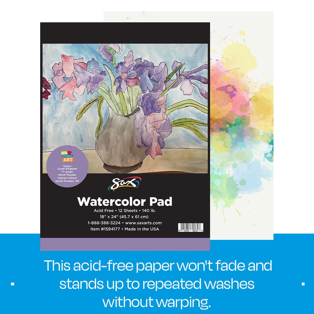 Sax Watercolor Pad, 140 lb, 18 x 24 Inches, White, 12 Sheets