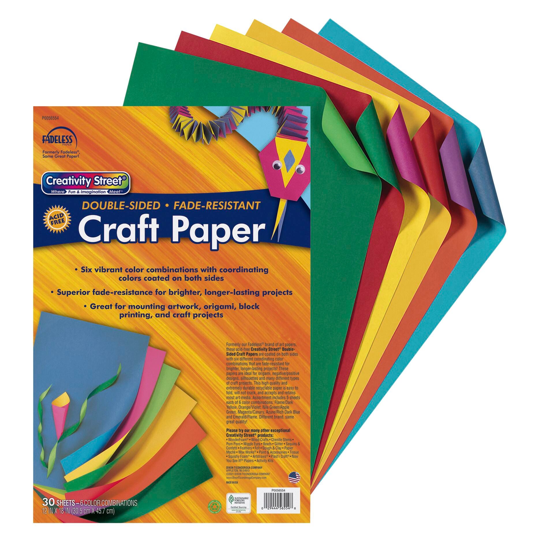 Description Fadeless Duet Paper with a two-color twist measures 12 x 18 inches and can be easily folded for all types of art projects. Both the sides of paper are ink coated with a different but coordinating color that is fade-resistant. Paper comes in six color combinations of Orange/Violet, Flame/Dark Yellow, Nile Green/Apple Green, Magenta/Canary, Azure/Rich Blue and Emerald/Flame. Bright paper is sold as Pack of 30.Features Available in six color combinations: flame/dark yellow, orange/violet, nile green/apple green, magenta/canary, azure/rich blue and emerald/flame Great for covering bulletin boards Make banners