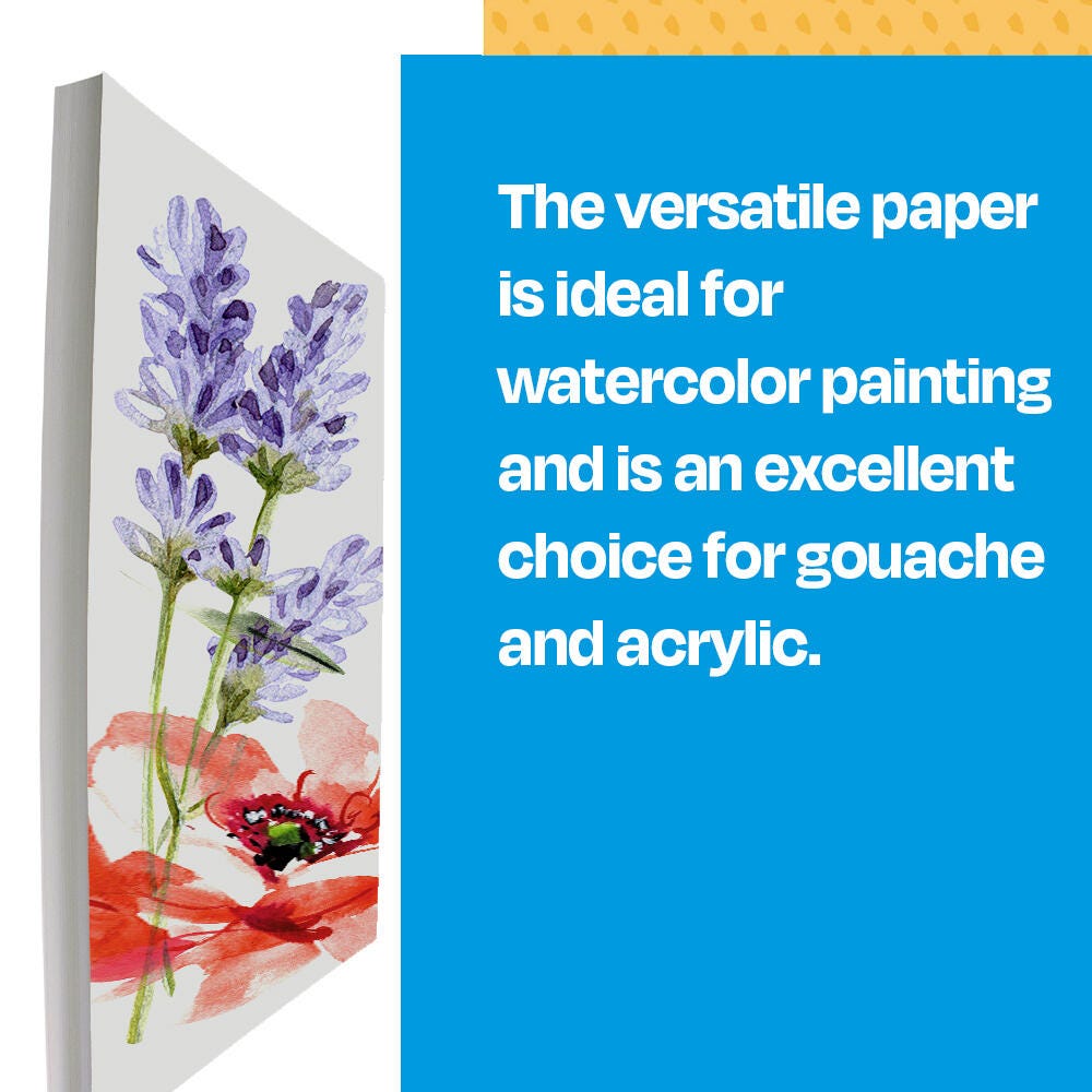 Fine-grain texture is smooth for precise work, holds mixed media and watercolor well, and dries quickly