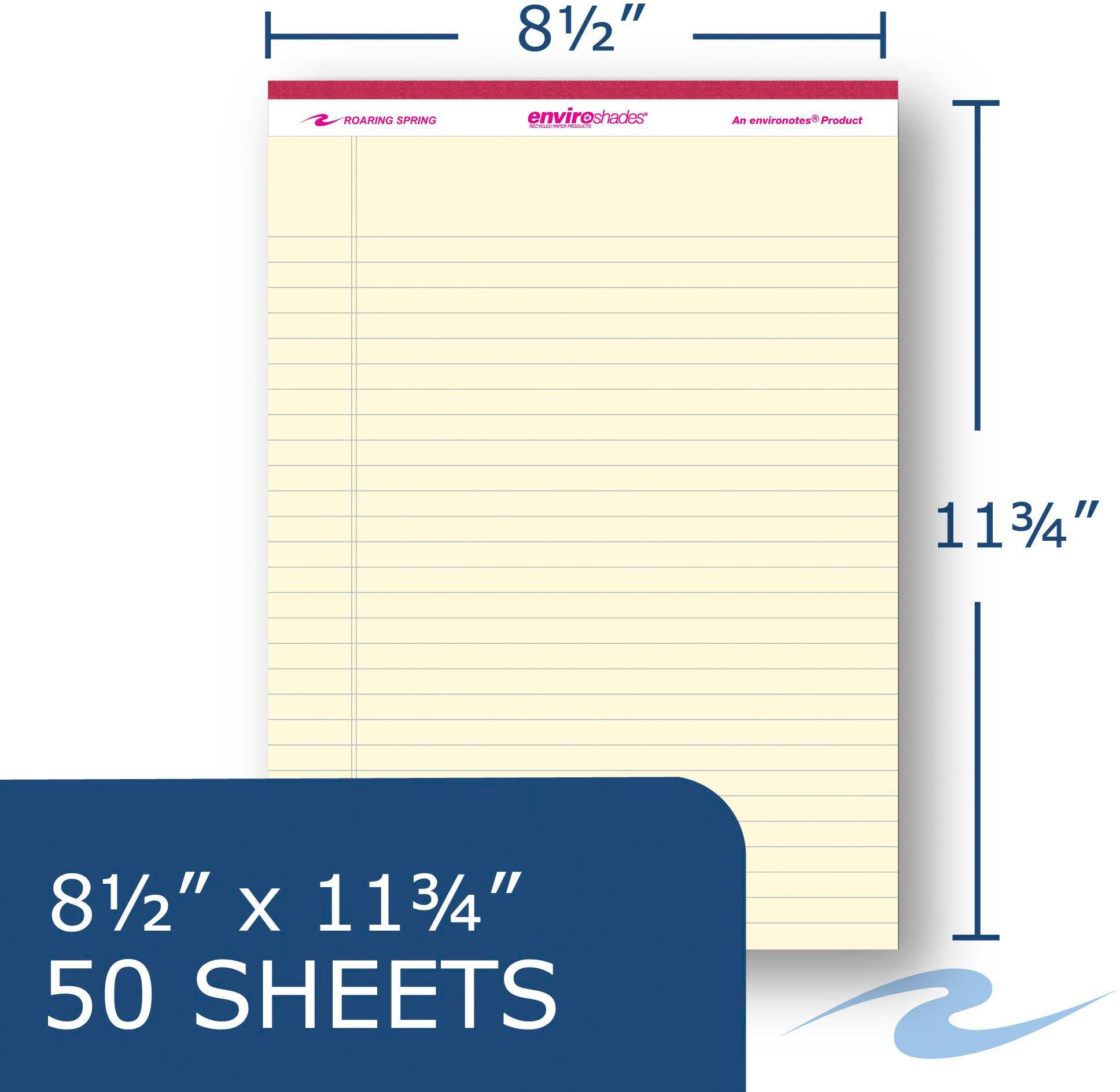 The Enviroshades Legal Pads contain 50 Sheets of paper measuring 8-1/2 x 11-3/4 inches. The pad is bound with staples, but each sheet is perforated so they are easy to remove with ripping. Manufactured using a combination of 30% recycled and 30% post-consumer waste. Pads are sold in a pack of twelve.Features