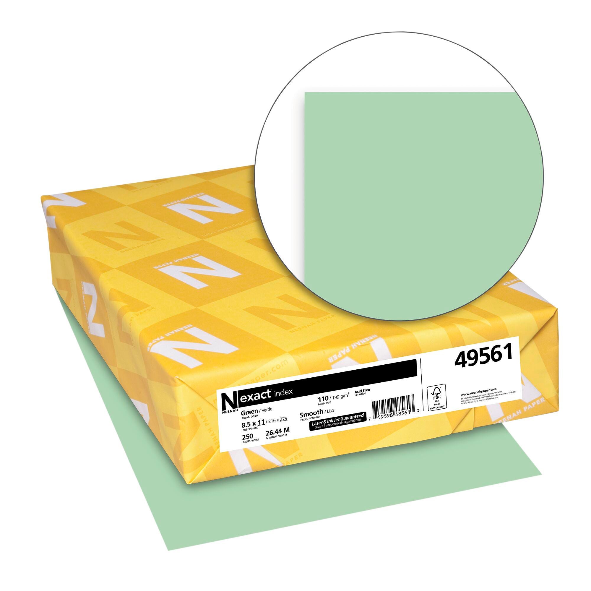 Neenah Exact Index, in Green, is ideal for quick print jobs and everyday use, while the smooth finish brings out the bold graphics and text. With this 110-pound basis weight, you never have to worry about creating single or double-sided documents because each sheet is bleed-free. This Exact Index offers 250 sheets, so you can create ample amount of letterheads, report covers, brochures, menus, and more. Just add creativity!