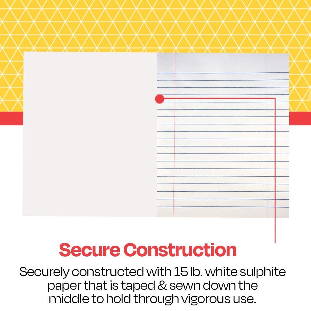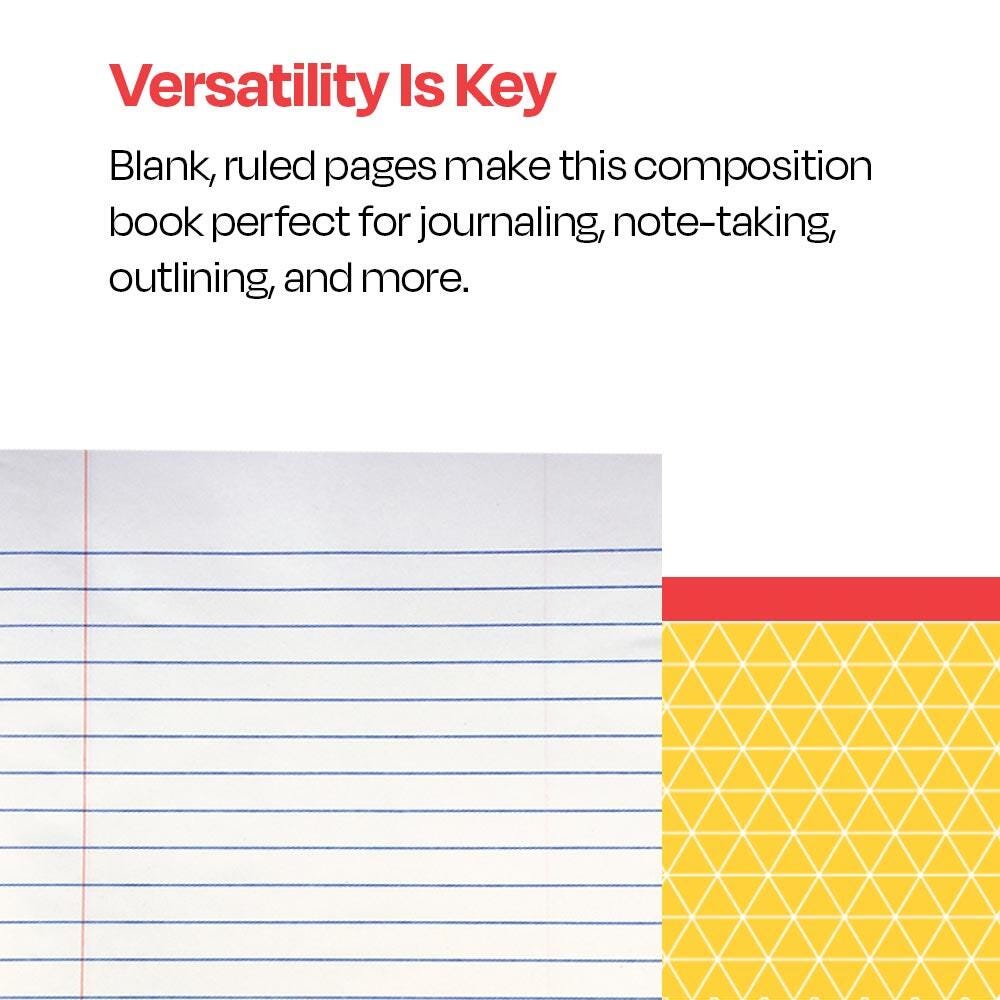 Features Quality composition book at a reasonable price Fits perfectly in lockers, desks and backpacks Makes a great journal or note-taking book Perfect for use in writing essays, short stories and other classroom assignments