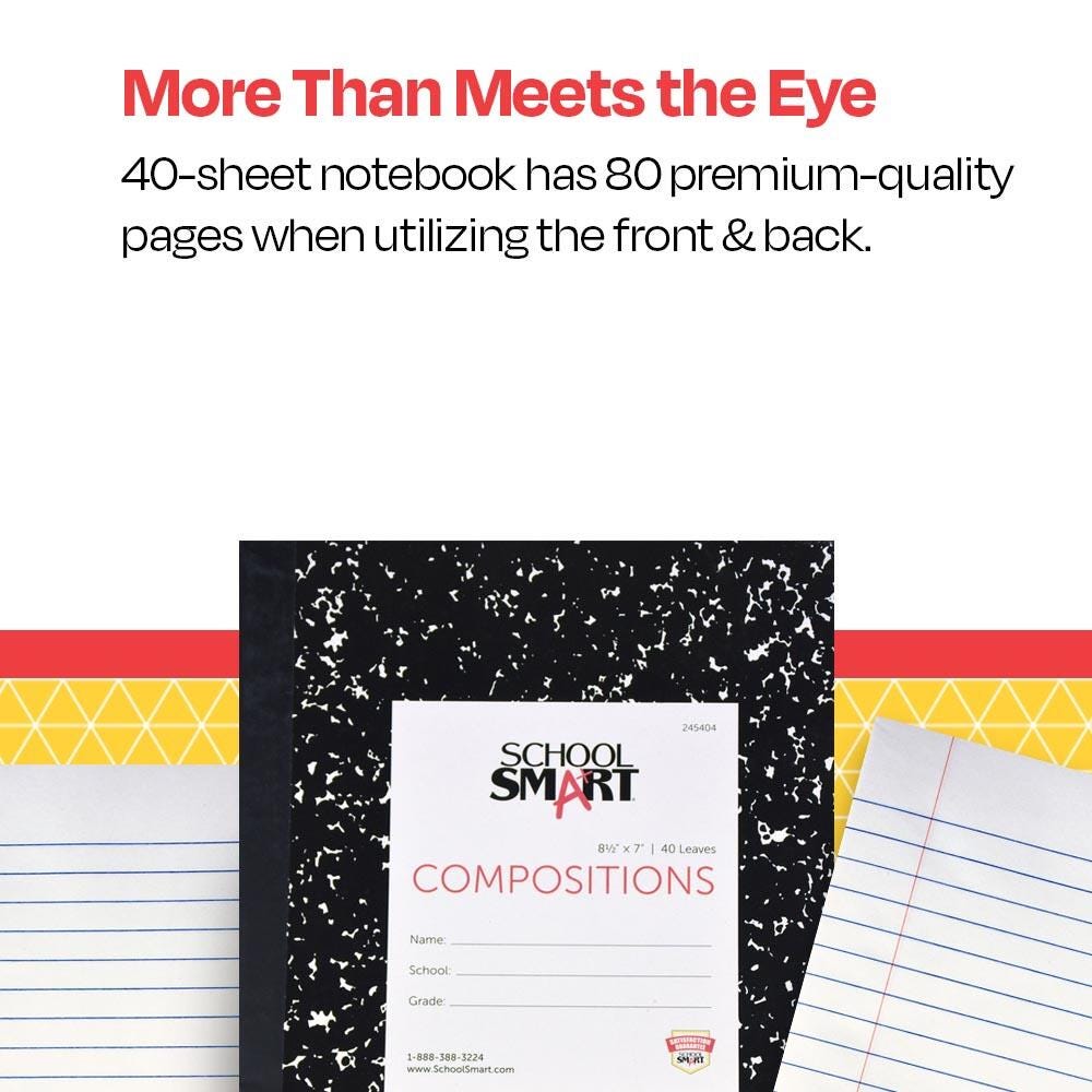 This composition book by School Smart is a necessity for classroom! These notebooks are perfect for writing practice, homework, drawing, or taking notes.