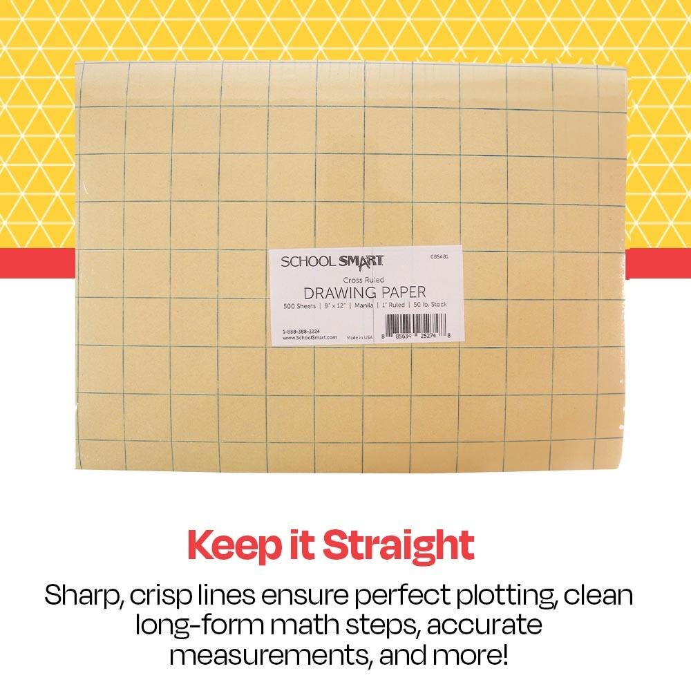 Work smarter, not harder with School Smart Ruled Graph Paper! This manila paper is ruled into small squares of equal size, making drawing precise charts, graphics, or diagrams quick and easy. Single-sided graph paper ensures ample room for practicing equations or shapes for geometry with the ability to take notes on the opposite side. These graph paper sheets, measuring 9 x 12 inches, include a 1-inch rule on one side and have a 50 lb basis weight. Designed to hold both ink and pencil without excessive bleed-through, and provides clean erasure for pencil marks. Sold as 500 sheets.
