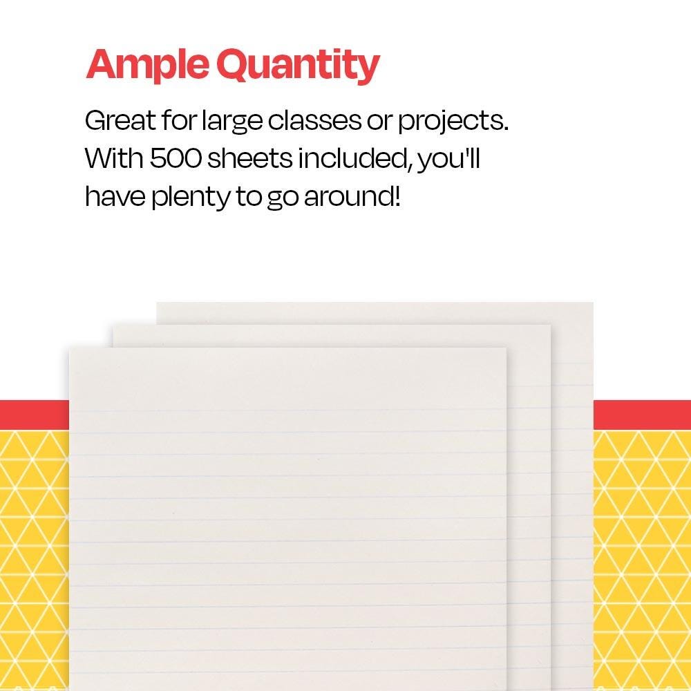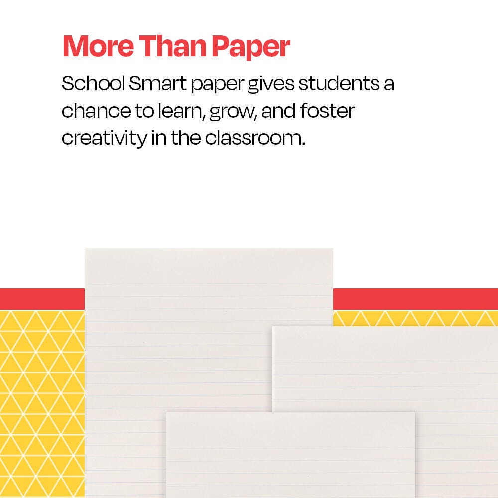 Description This white, lined paper from School Smart has many uses such as note-taking, brainstorming, journaling, and more. This theme paper features a 3/8 inch rule on both sides the short way with an economical value, perfect for the classroom. Grades 4 and up.