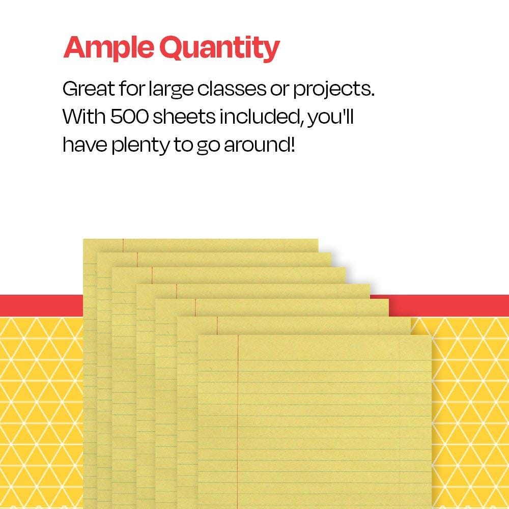 School Smart Newsprint Paper with Red Margin, 8 x 10-1/2 Inches, Yellow, 500 Sheets
