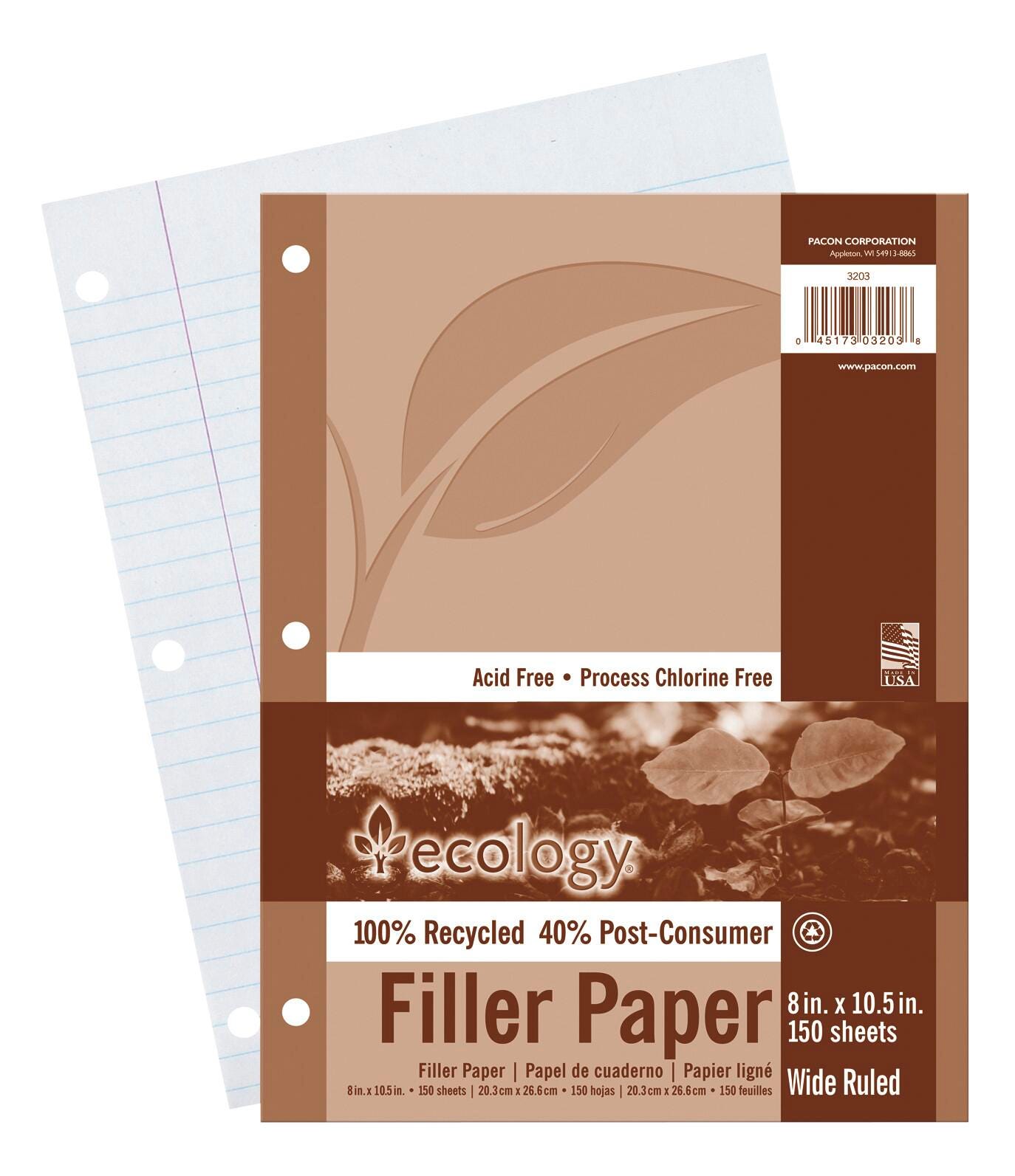 Ecology Recycled Filler Paper contains 100 percent total recycled content with 40 percent post-consumer fiber. Plus, 40 percent of the power used to produce this paper is from hydro power.