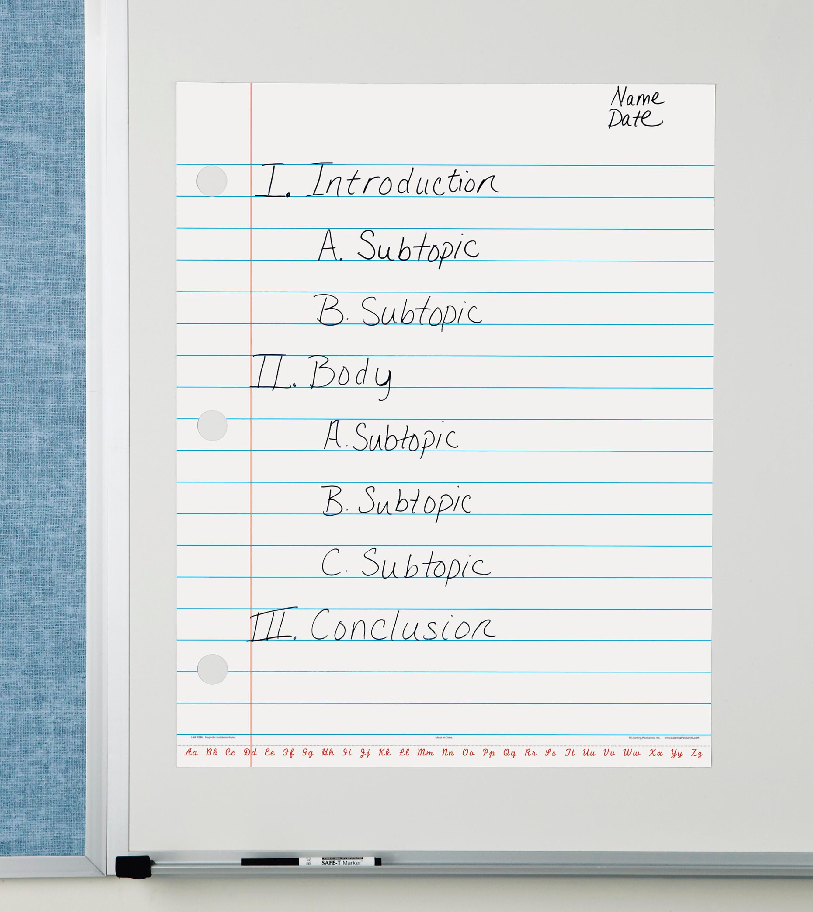 Learning Resources helps save time and resources when you model writing skills with this reusable, giant-sized version of student paper. Durable write & wipe surface works with wet-erase markers. Strong backing sticks firmly to magnetic whiteboards. Use to model sentences, paragraphs, outlines, paper headings, note-taking, letters, and more. Measures 22 L x 28 H inches.