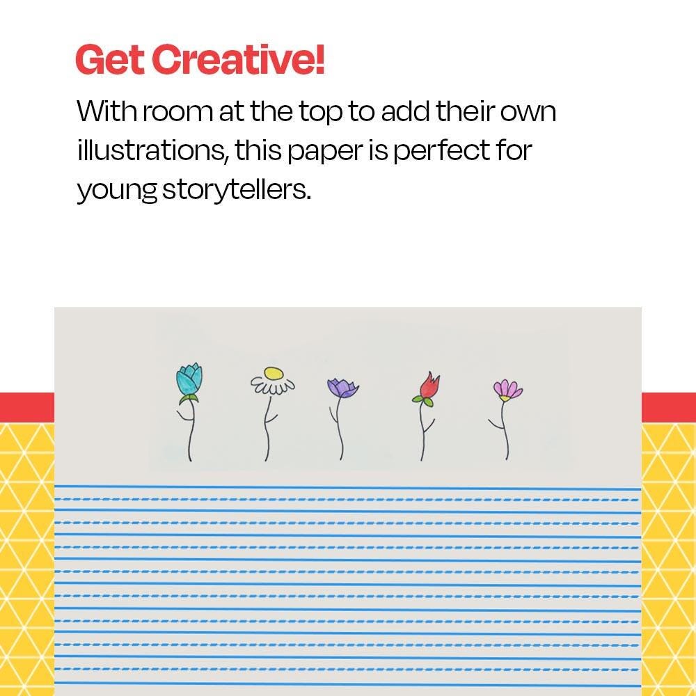 Lined paper allows room for adding illustrations or pictures alongside writing
