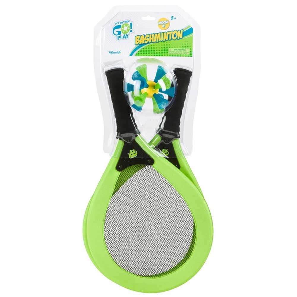 A giant-sized version of badminton! Volley back and forth with the oversized soft rackets and bashable, bouncy birdie ball. Includes two 21 inch rackets and one 4-1/2 inch birdie ball. Ages 5 and up.